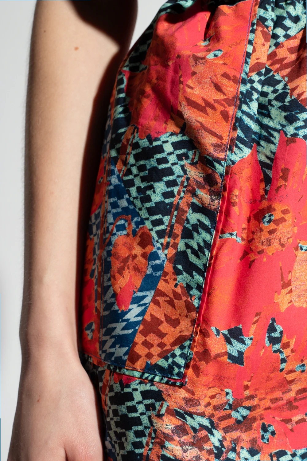 Kolorowe, bawełniane szorty, model ‘Edlyn’ Ulla Johnson. W pasie wszyta guma ściągana trokami. Ozdobione wzorem z motywem geometrycznym i kwiatowym. Dwie wsuwane kieszenie.
