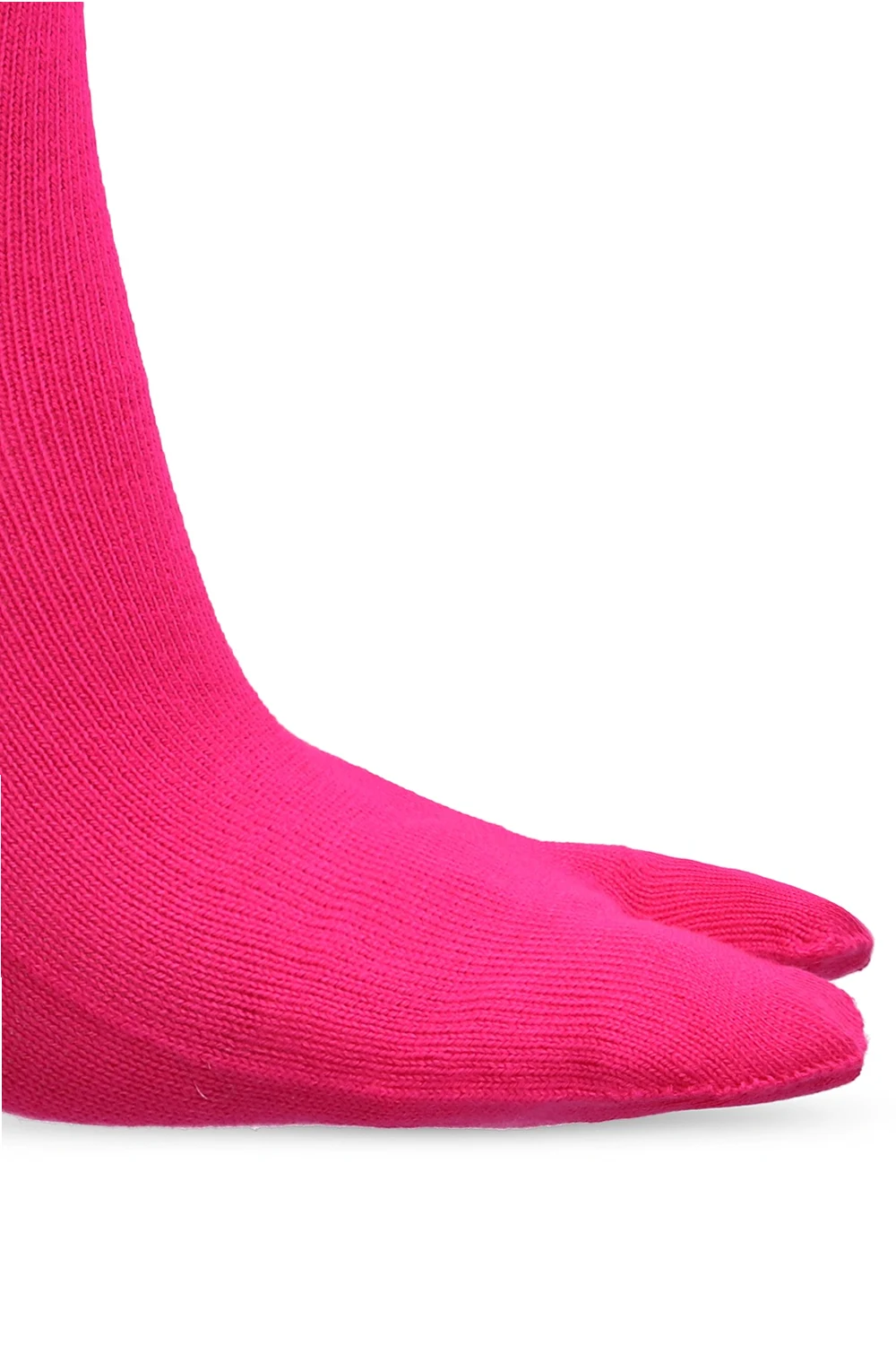 Różowe, prążkowane skarpety Maison Margiela. Wykonane z bawełny. Między palcami wycięcie typu ‘tabi’.