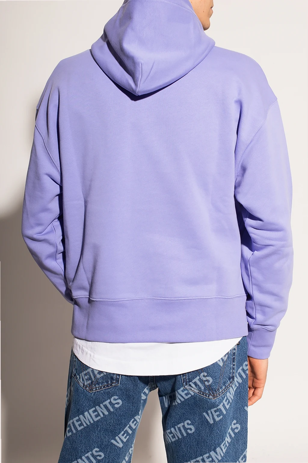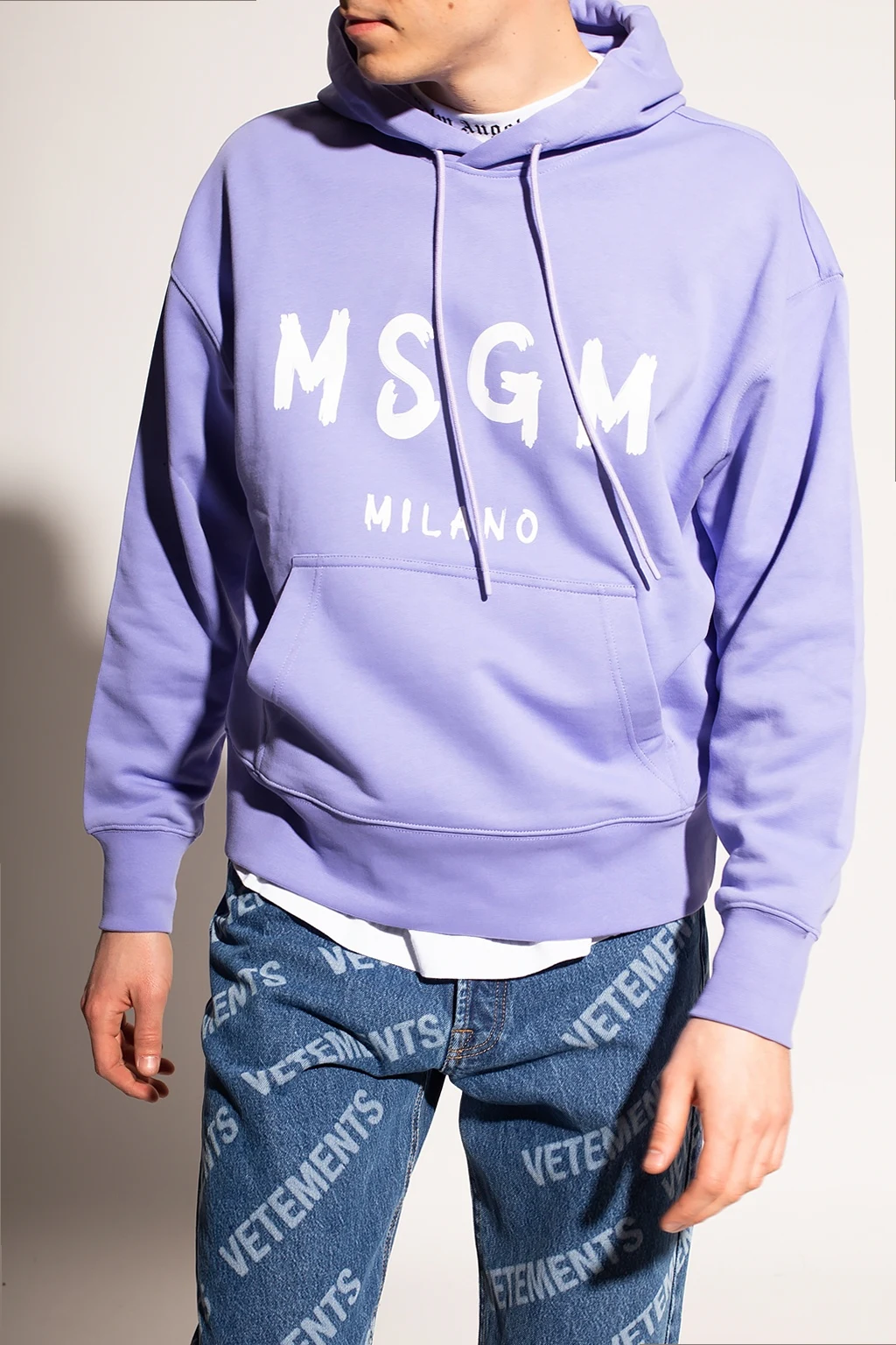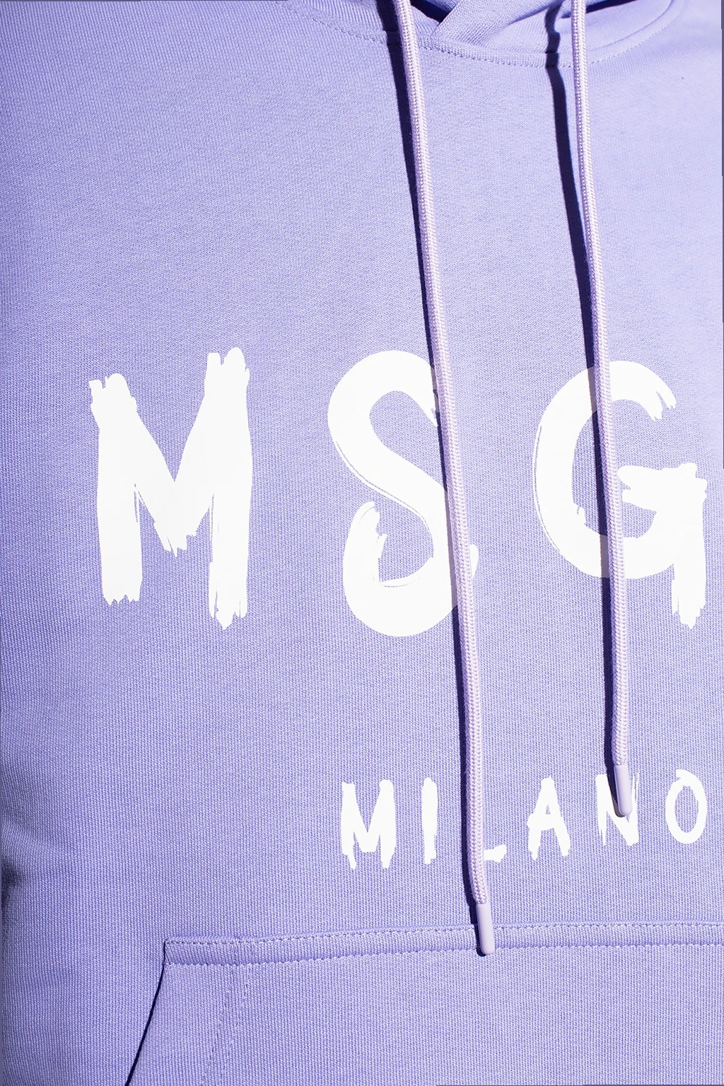 Fioletowa, bawełniana bluza MSGM. Kaptur ściągany trokami. Z przodu kieszeń i nadrukowane białe logo. Długie rękawy i dół bluzy zakończone ściągaczem.