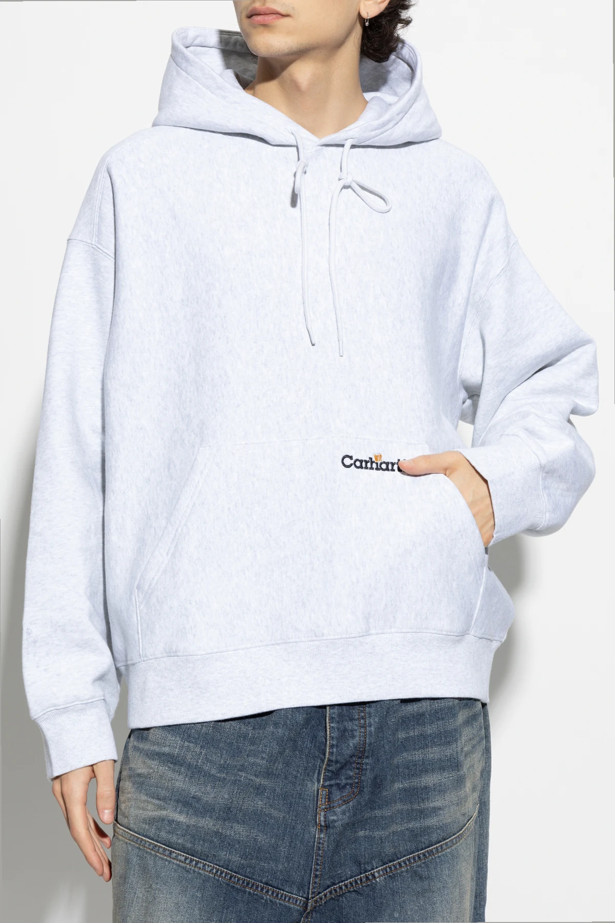 Prezentujemy bluzę z kapturem marki Carhartt, która jest esencją połączenia klasyki z nowoczesnością. Jasnoszara barwa tego eleganckiego odzienia subtelnie podkreśla kunszt i minimalizm, a haftowane logo "Carhartt WIP" na przodzie nadaje jej niepowtarzalnego charakteru.