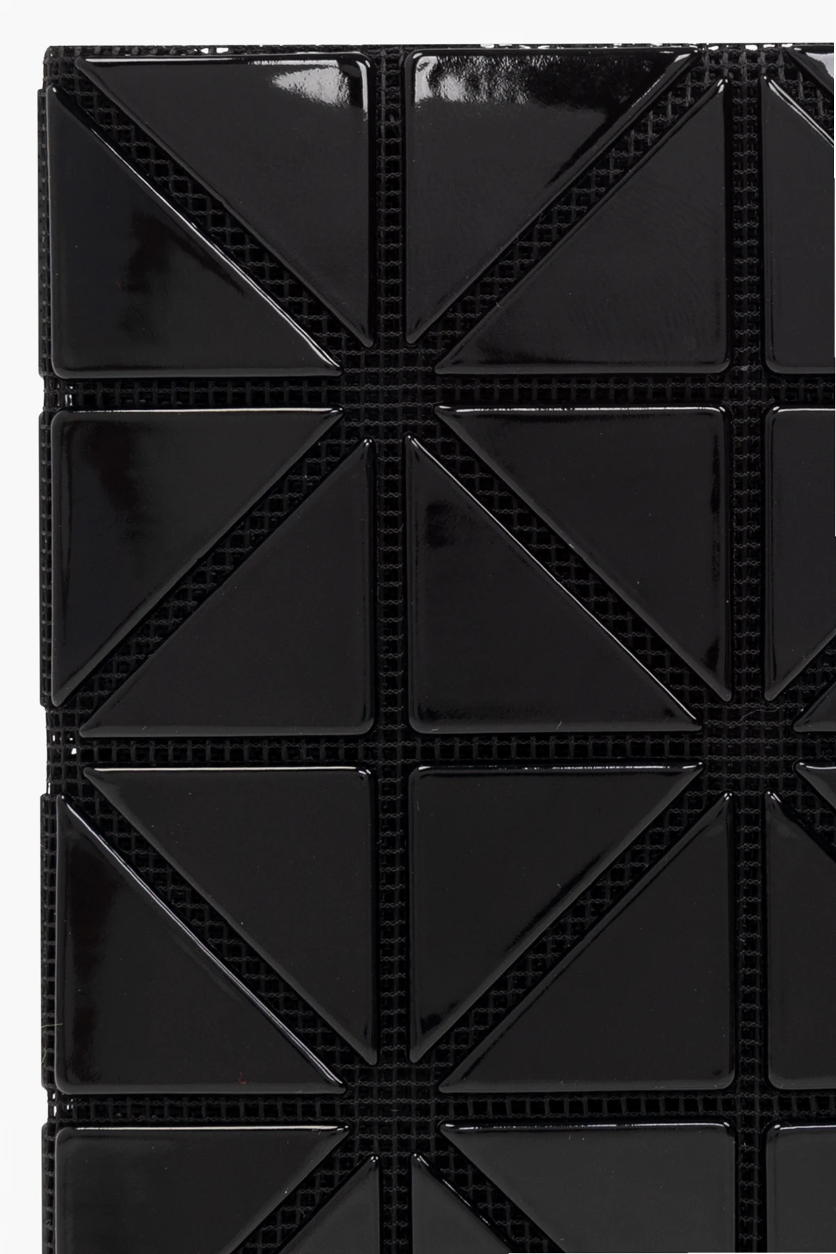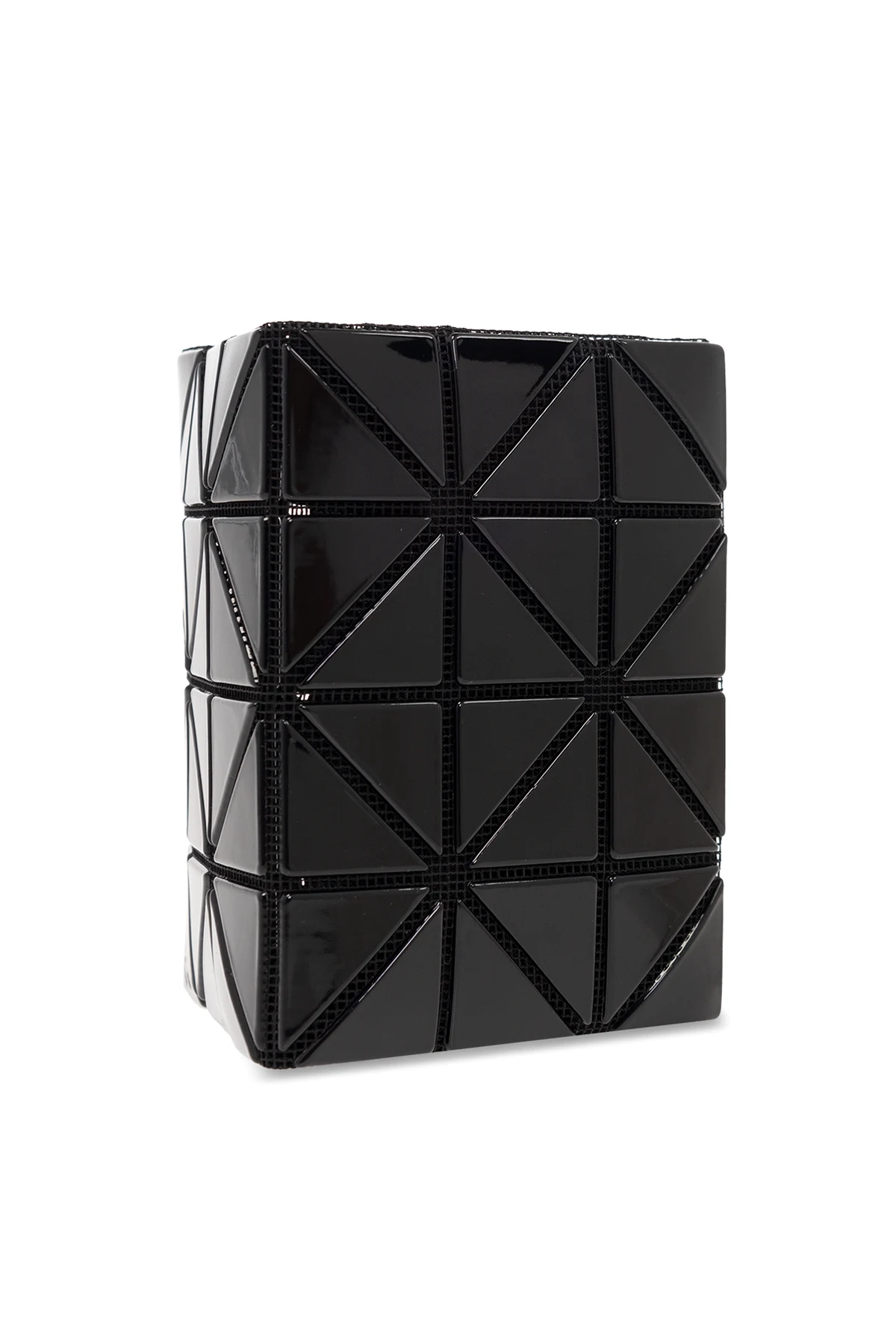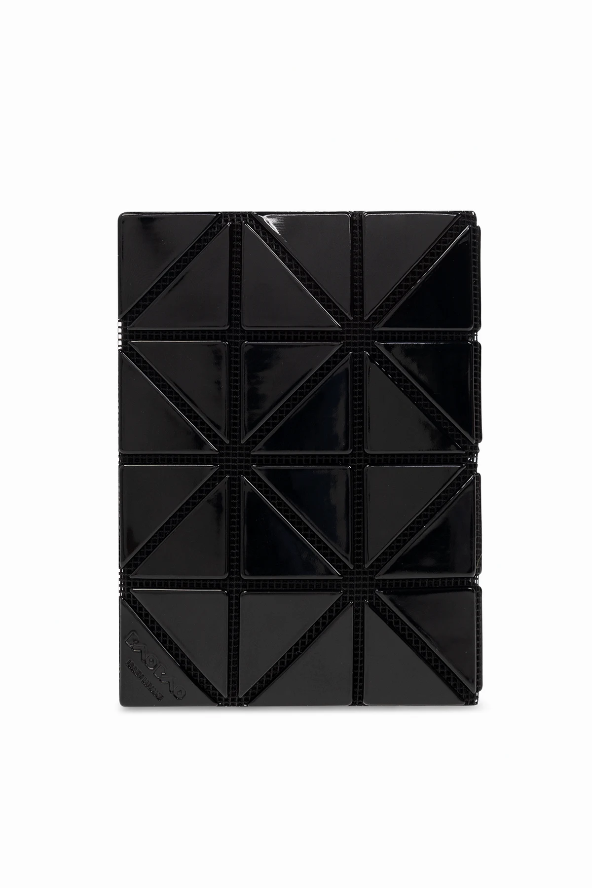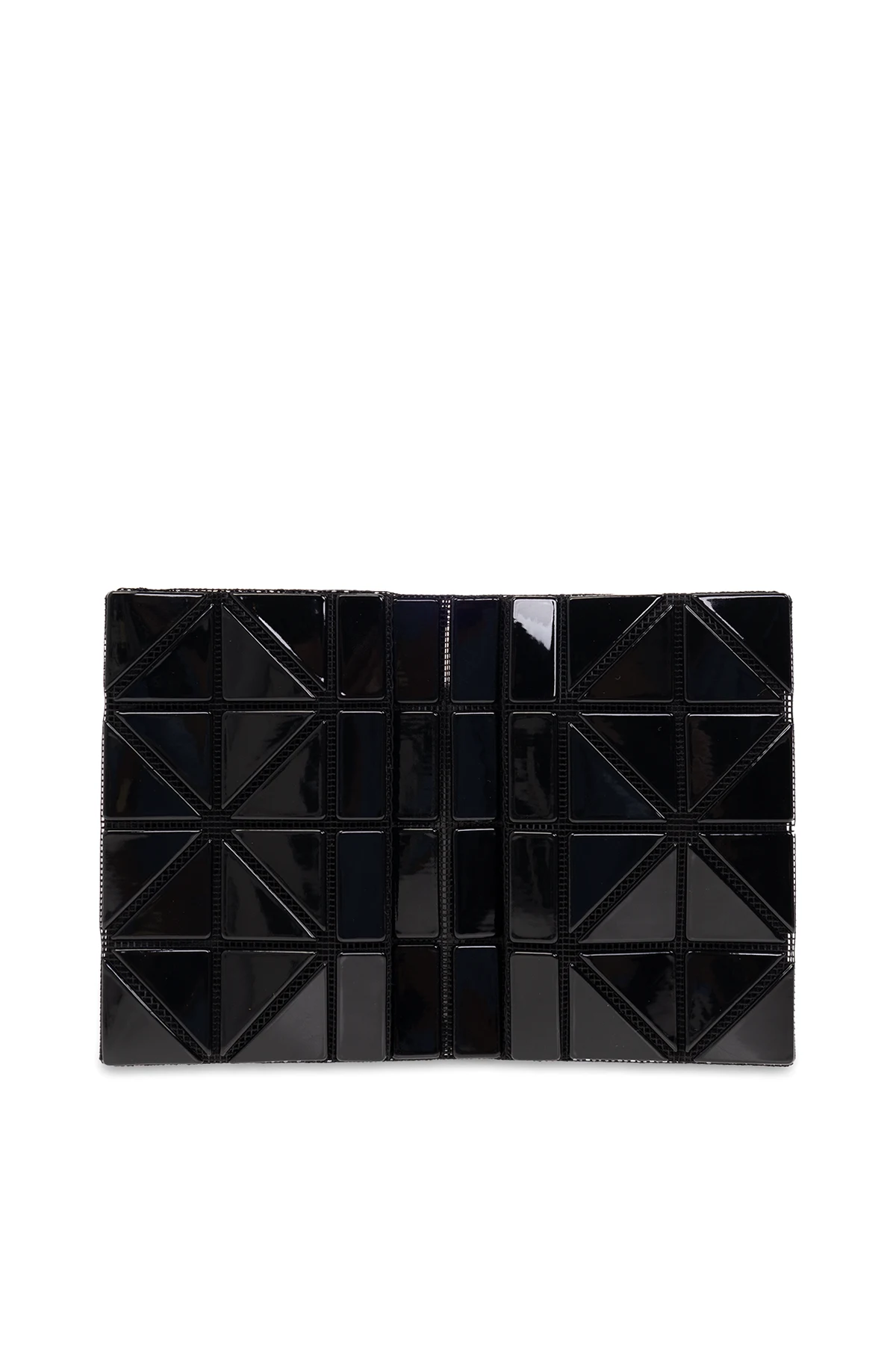 Czarne, składne etui na karty Bao Bao Issey Miyake. Ozdobione geometrycznymi, połyskującymi wstawkami. Wewnątrz dwie wsuwane kieszenie.