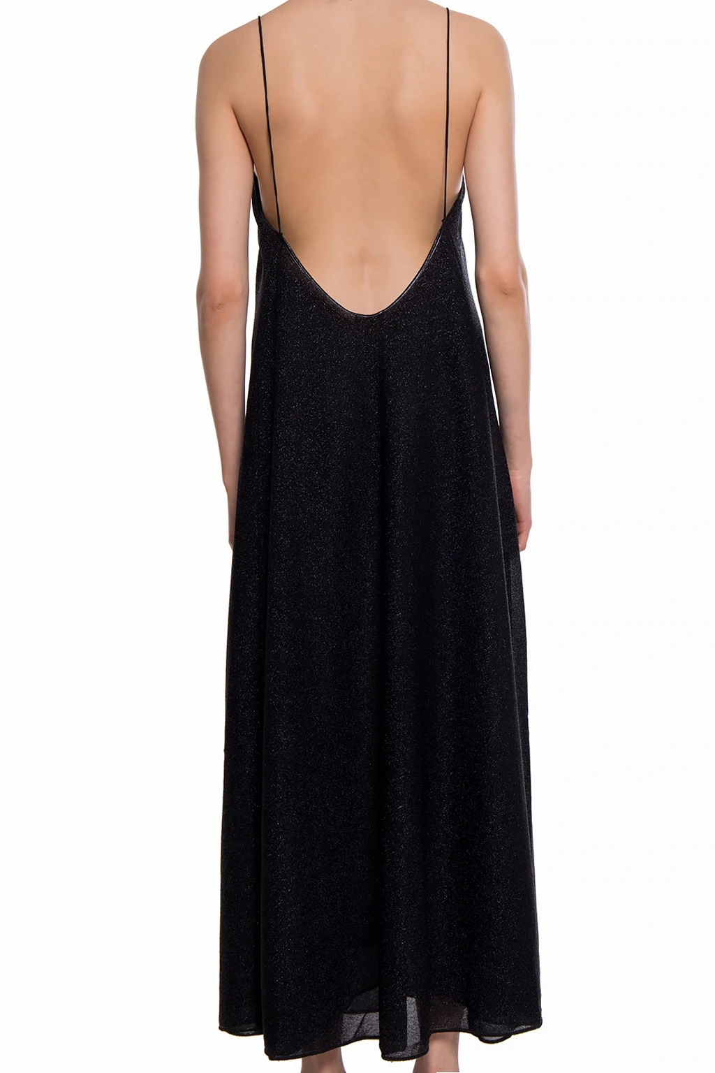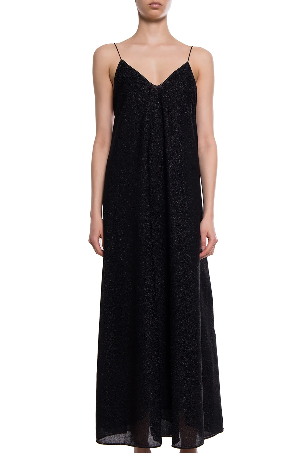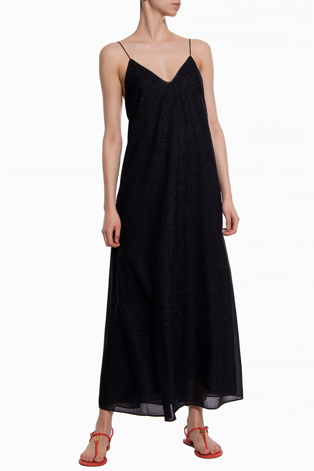 Czarna, dwuwarstwowa sukienka na ramiączkach Oseree. Wykończona lureksową nicią.