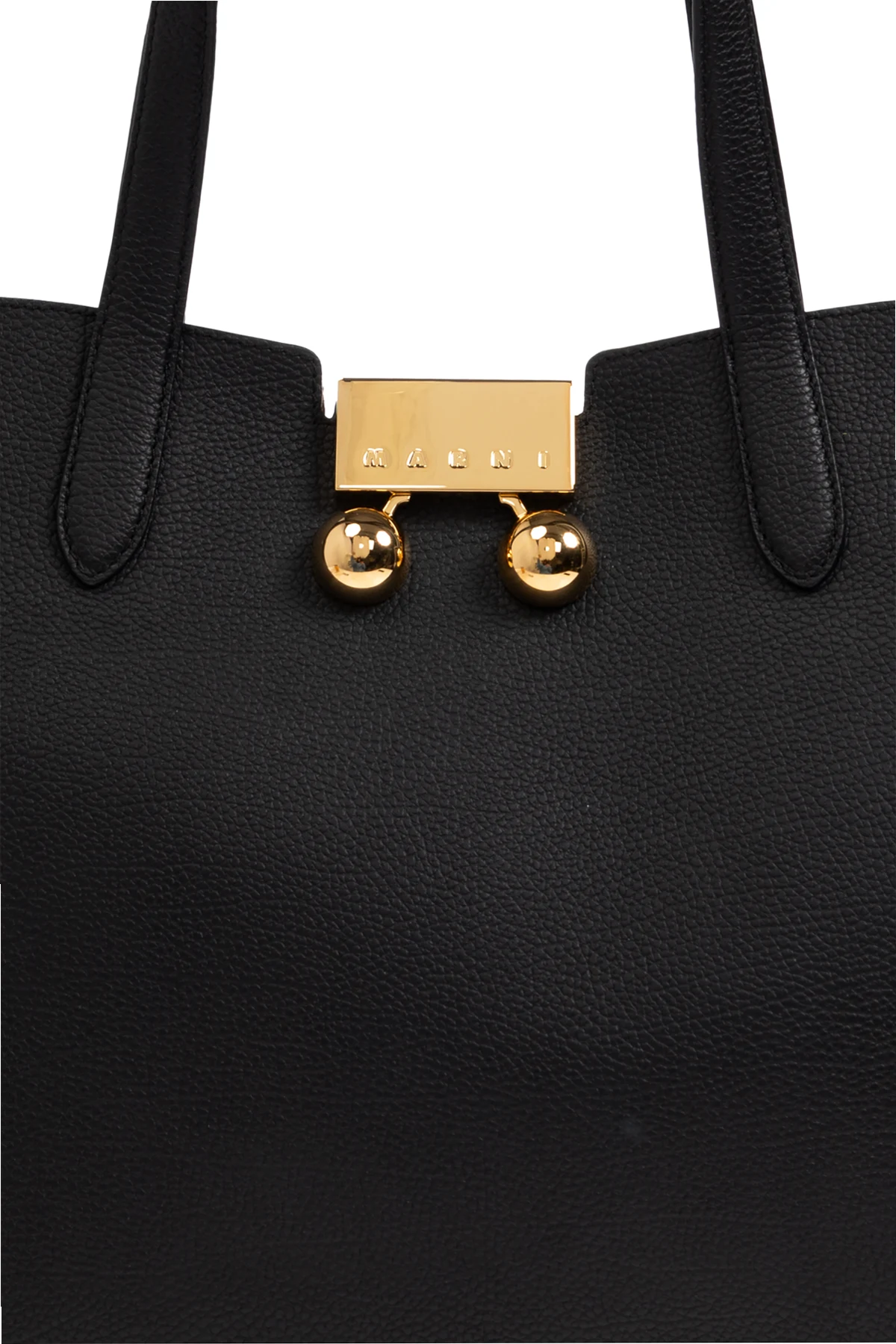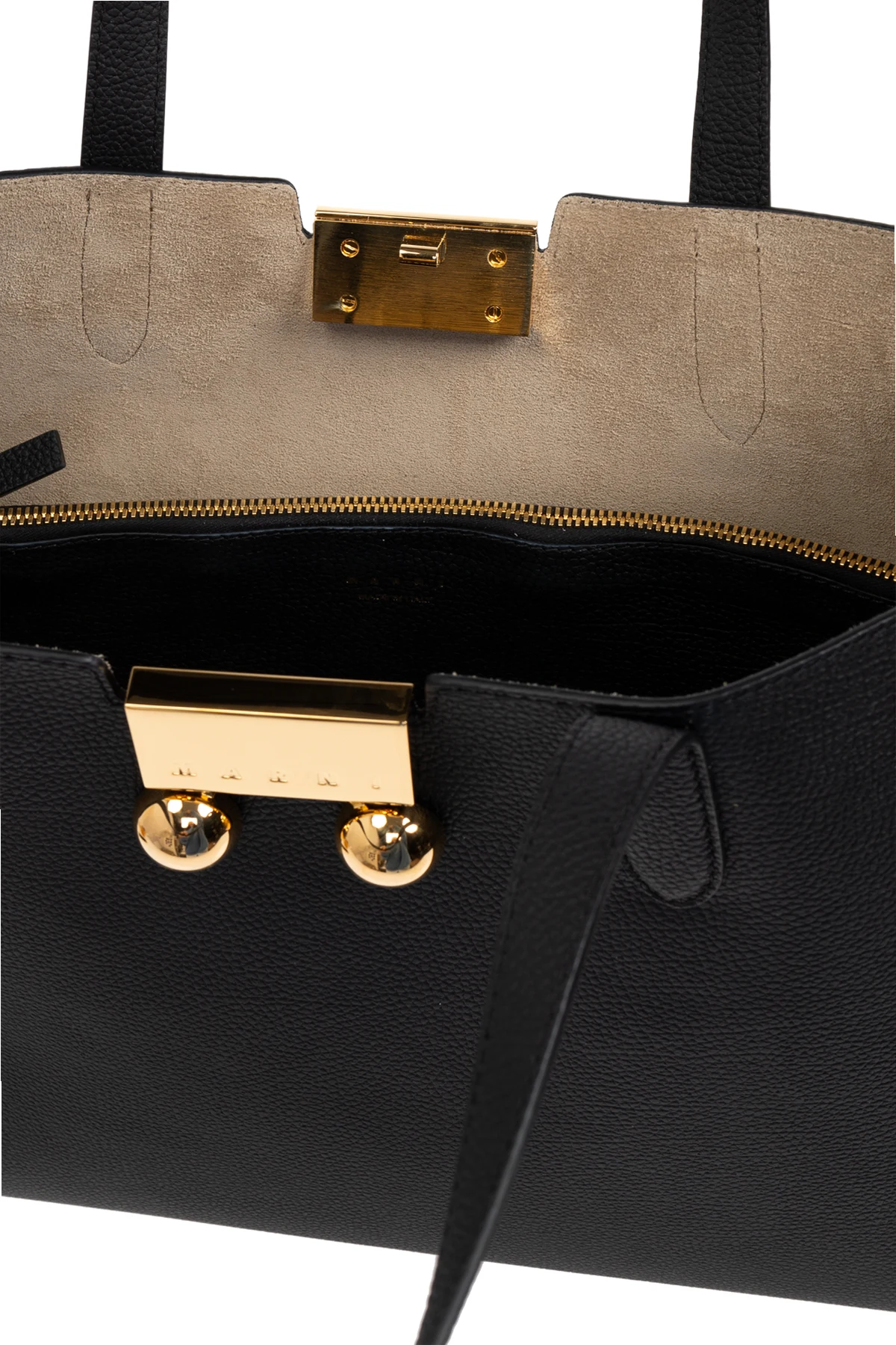 Przedstawiamy Torba 'Trunkaroo Medium' typu 'shopper' od renomowanej włoskiej marki Marni – arcydzieło elegancji i funkcjonalności. Wykonana z najwyższej jakości skóry cielęcej o wyraźnej teksturze, torba emanuje wyrafinowaniem i subtelnym urokiem.