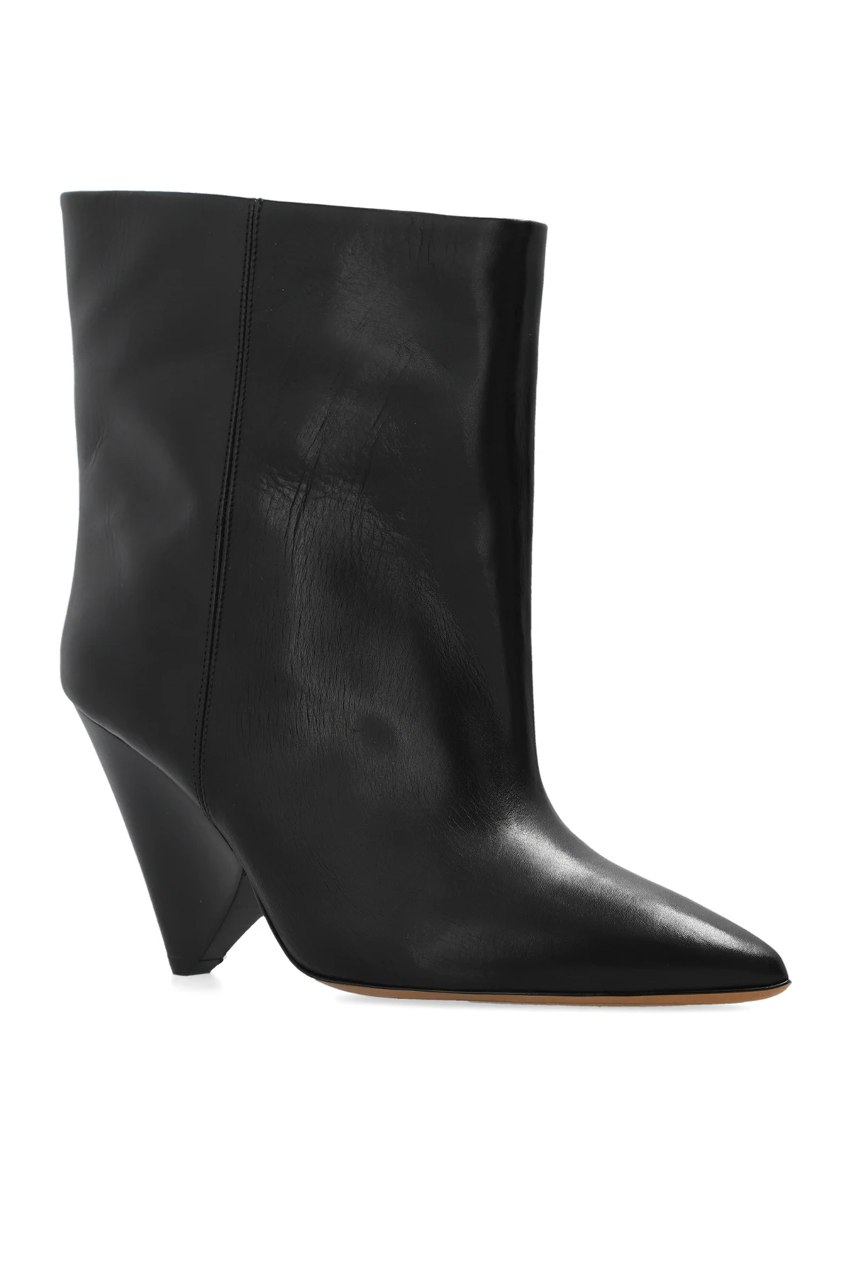 Czarne, wsuwane botki na obcasie, model ‘Miyao’ Isabel Marant. Wykonane z gładkiej skóry cielęcej. Nosek w szpic. Beżowa skórzana podeszwa.