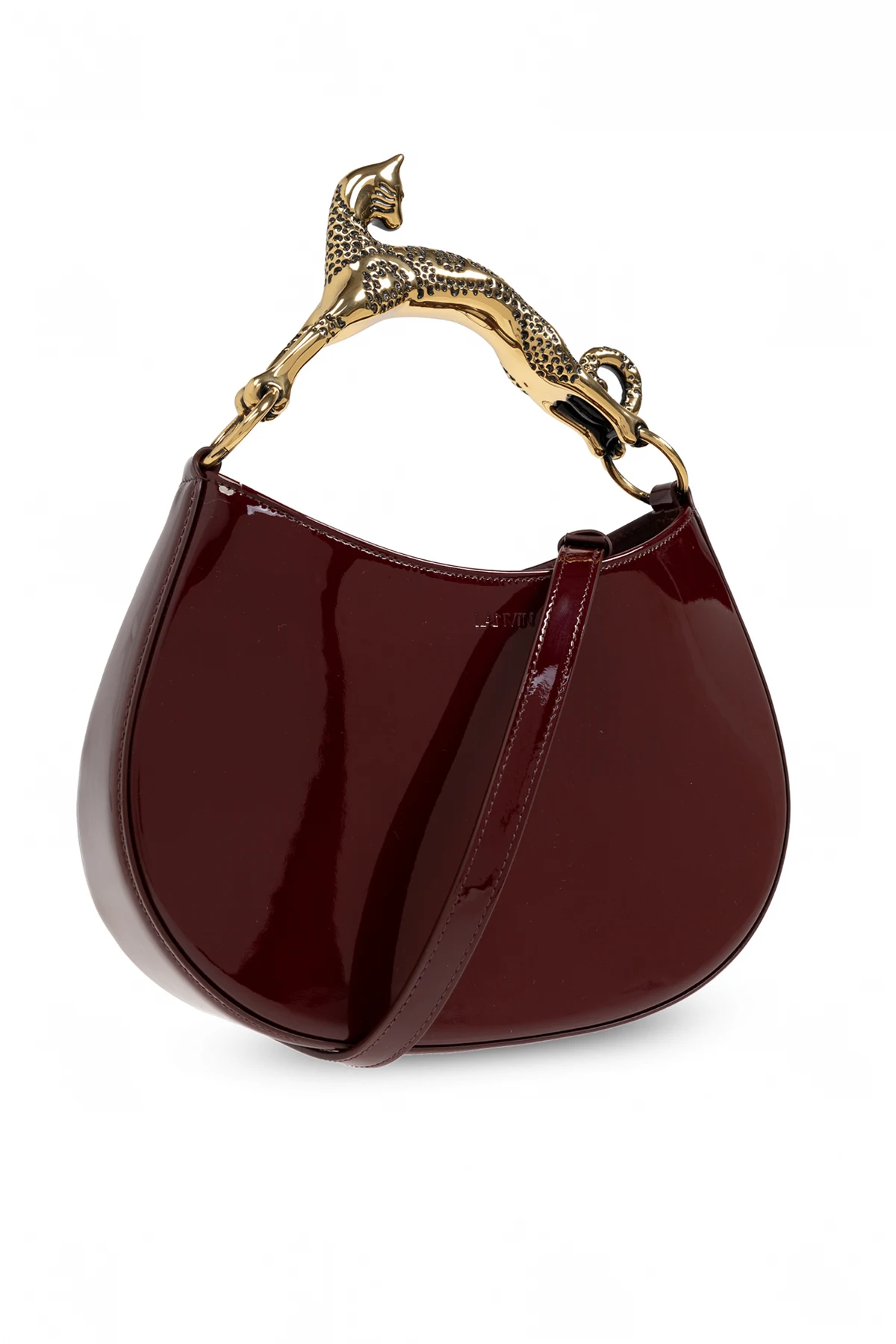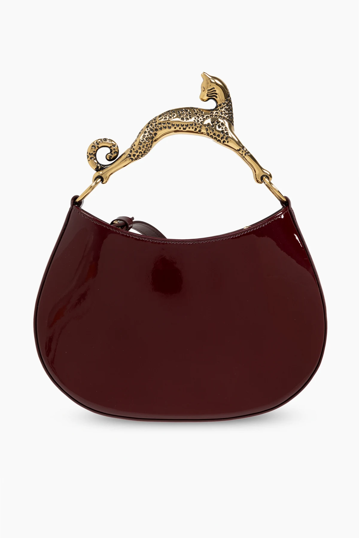 Wykonana z lakierowanej skóry cielęcej w głębokim kolorze bordo, torba emanuje luksusem i elegancją. Jej gładka i błyszcząca powierzchnia przyciąga wzrok i dodaje stylu każdej stylizacji. Najbardziej charakterystycznym elementem torby jest złoty uchwyt w kształcie kota, który jest szczegółowo wykonany i dodaje torbie unikalnego uroku.