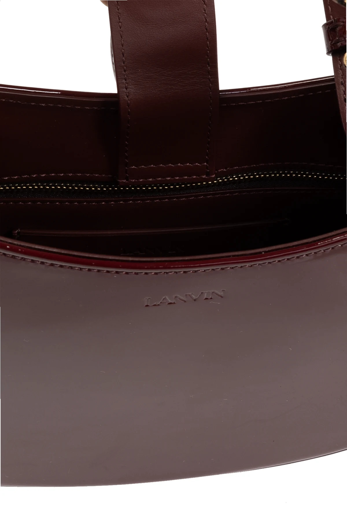 Torba posiada również wygrawerowane logo LANVIN na wewnętrznej stronie, co potwierdza jej ekskluzywne pochodzenie. Pasek na ramię, wykonany z tego samego materiału i w tym samym kolorze, zapewnia spójny wygląd. Wnętrze torby jest starannie wykończone, z dodatkową kieszonką na suwak, co zwiększa jej funkcjonalność.