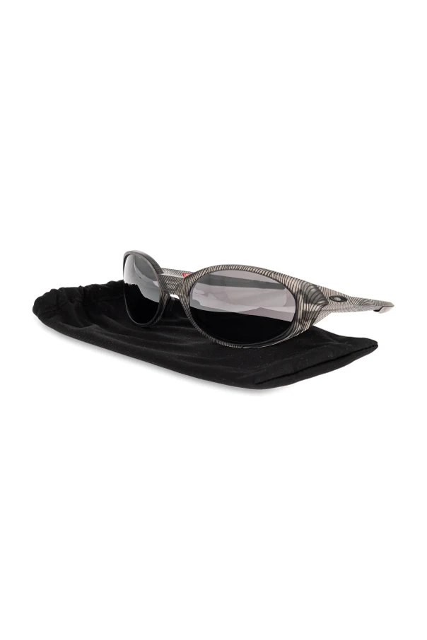 Okulary przeciwsłoneczne Eyejacket Redux stanowią kunsztowną harmonię nowoczesnego wzornictwa oraz wyrafinowanej estetyki. Ich owalne, masywne szkła oraz opływowa linia oprawy nadają całości niepowtarzalny, futurystyczny charakter . Niezwykle efektowny, szaro-czarny wzór inspirowany strukturą drewna subtelnie podkreśla prestiż kolekcji premium.