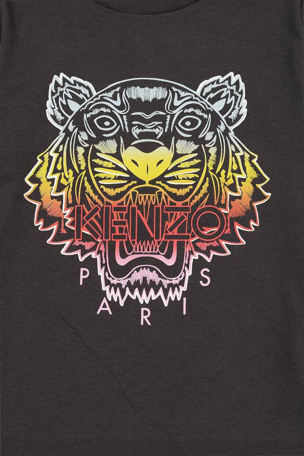 Ciemnoszary t-shirt Kenzo Kids. Wykonany z bawełny. Ozdobiony nadrukowanym wzorem z motywem zwierzęcym. Okrągły dekolt. Długie rękawy.