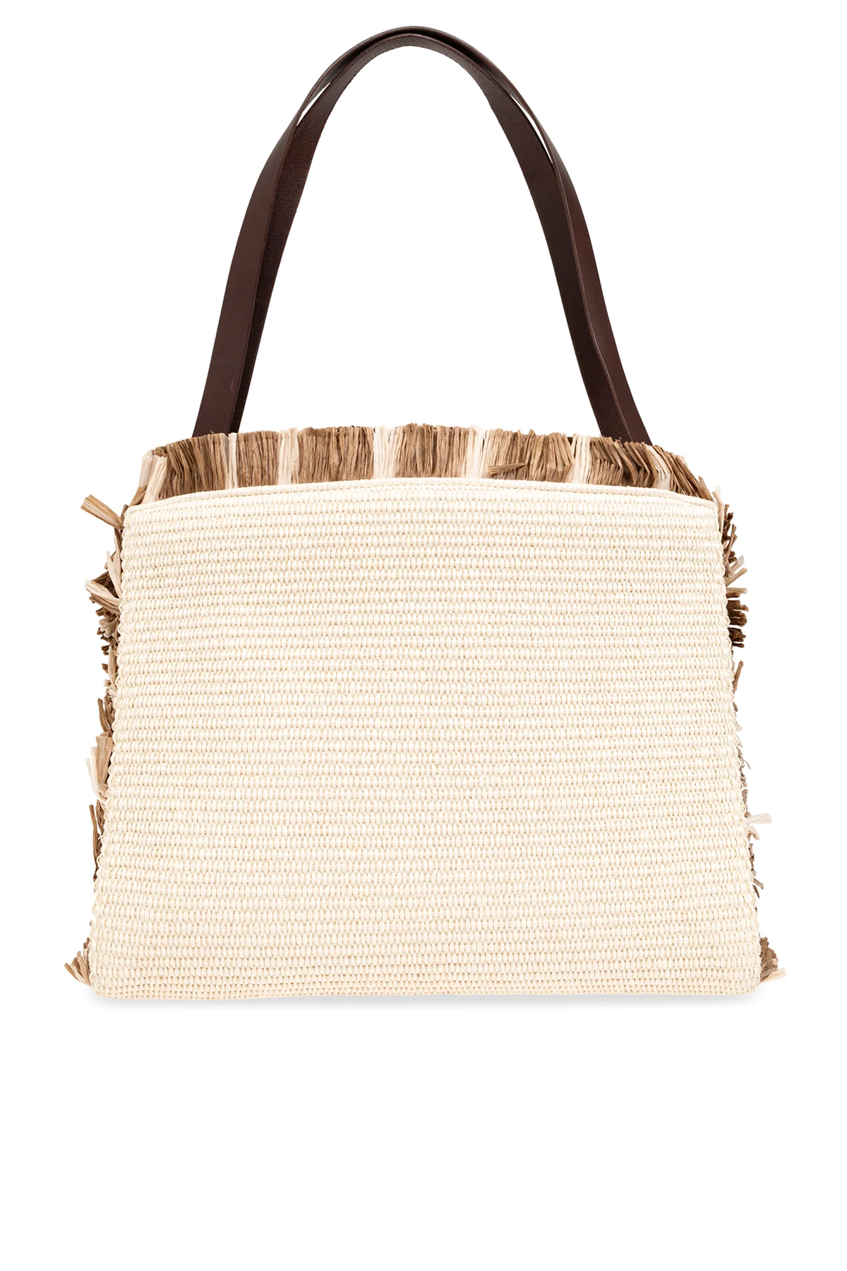 Prezentujemy Państwu wyjątkową torbę typu ‘shopper’ od renomowanego projektanta Missoni , która stanowi kwintesencję połączenia elegancji z luźnym stylem boho. Wykonana z wyjątkowego materiału, który swoją teksturą przypomina plecionkę, torba ta emanuje subtelnym, kremowym odcieniem, delikatnie kontrastującym z brązowymi, płaskimi uchwytami, które sugerują wykorzystanie najwyższej jakości skóry lub jej imitacji.