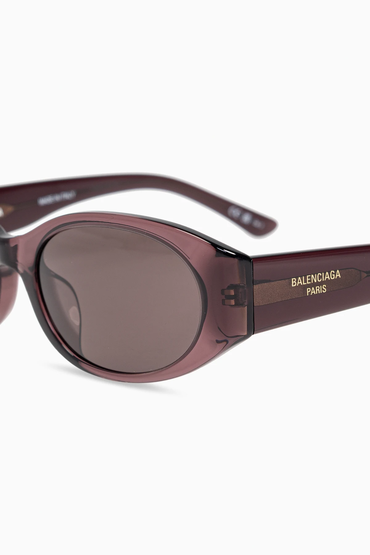 Przedstawiamy ekskluzywne okulary przeciwsłoneczne marki Balenciaga , które wyróżniają się eleganckim i minimalistycznym designem. Okulary te posiadają owalne oprawki wykonane z wysokiej jakości tworzywa sztucznego, co zapewnia im wyjątkową trwałość i lekkość. Dominujący ciemny fioletowy kolor nadaje im nowoczesny i stylowy wygląd, a złote logo "BALENCIAGA PARIS" umieszczone na zausznikach podkreśla ich ekskluzywność i wysokiej jakości wykonanie.