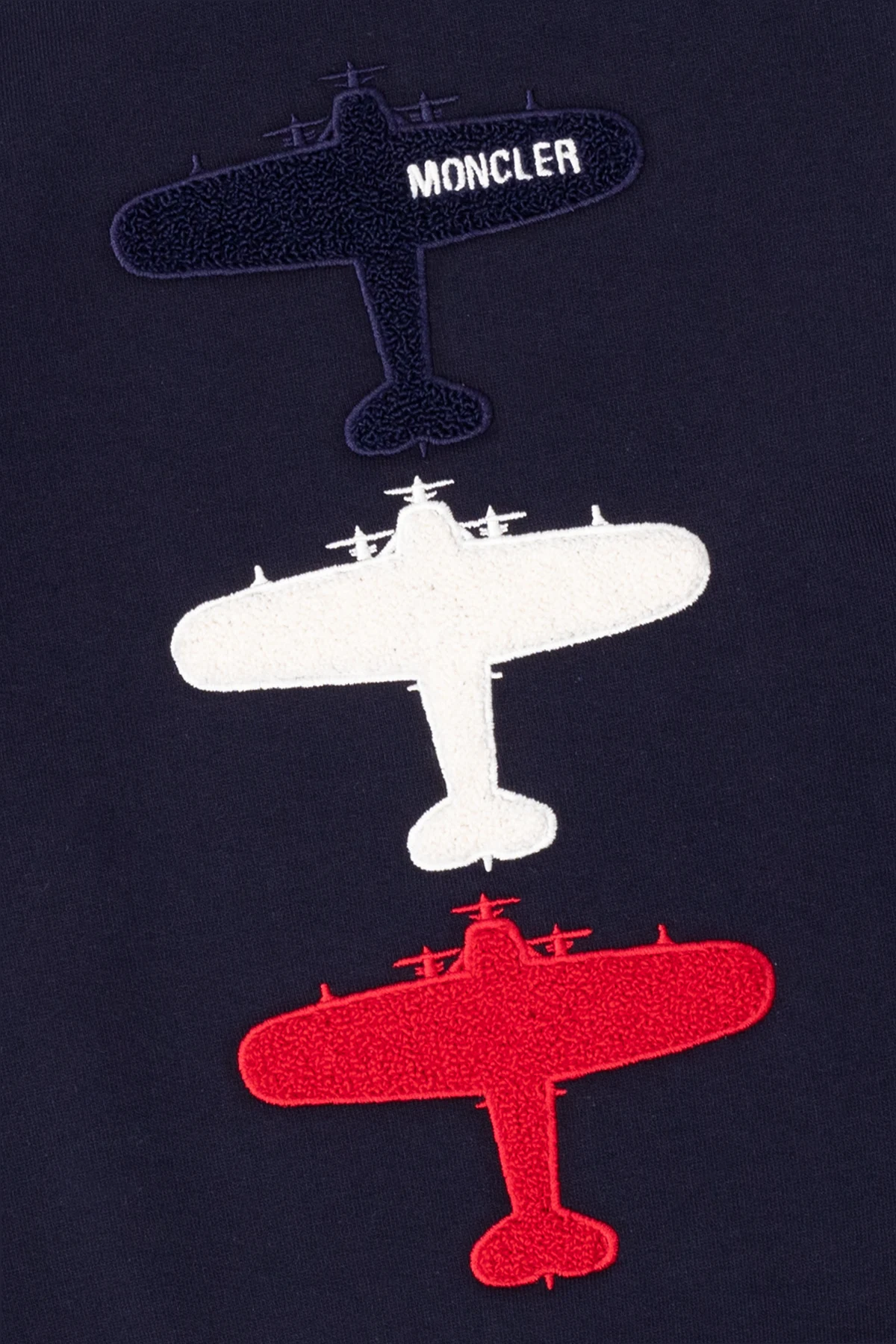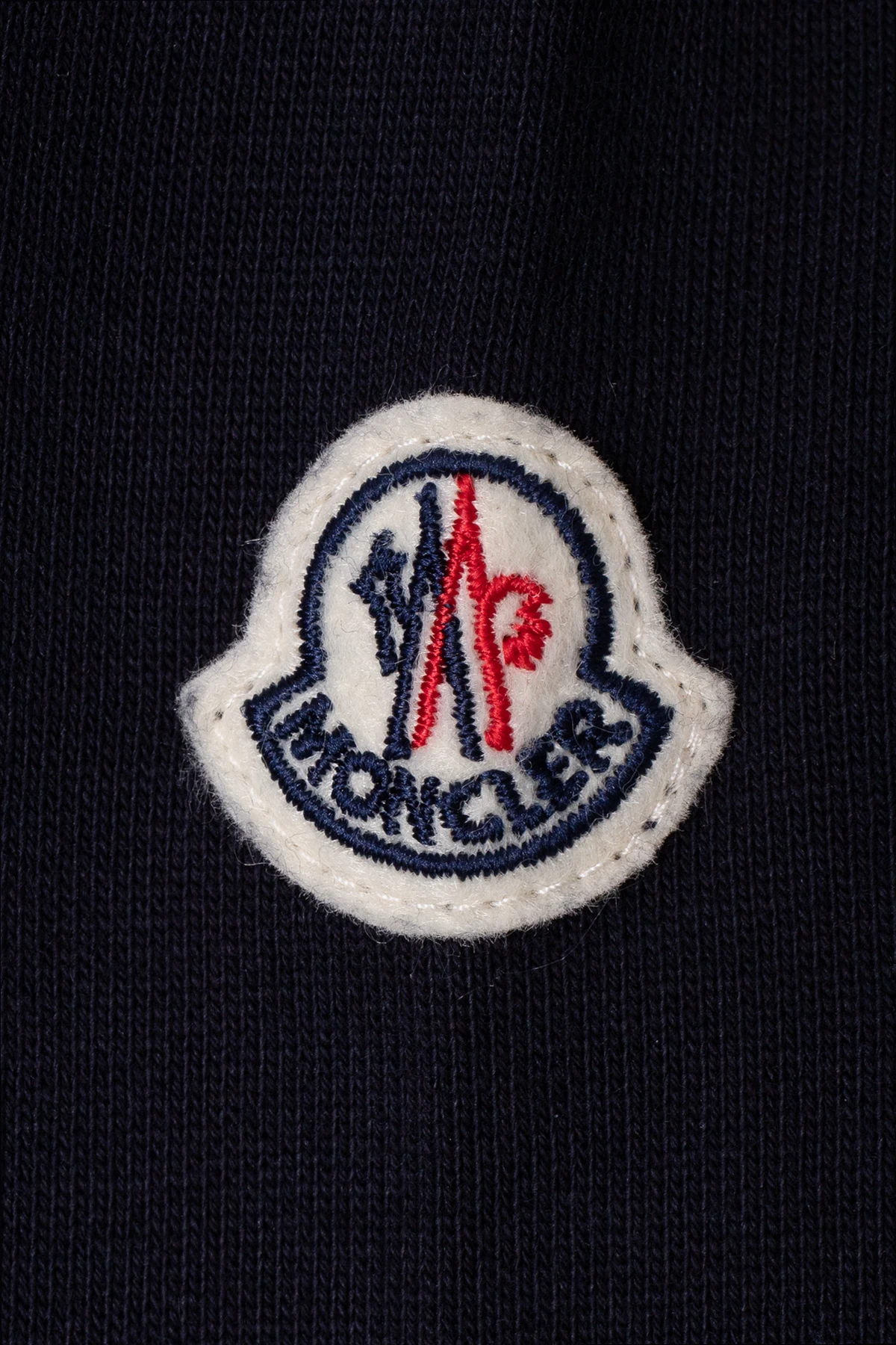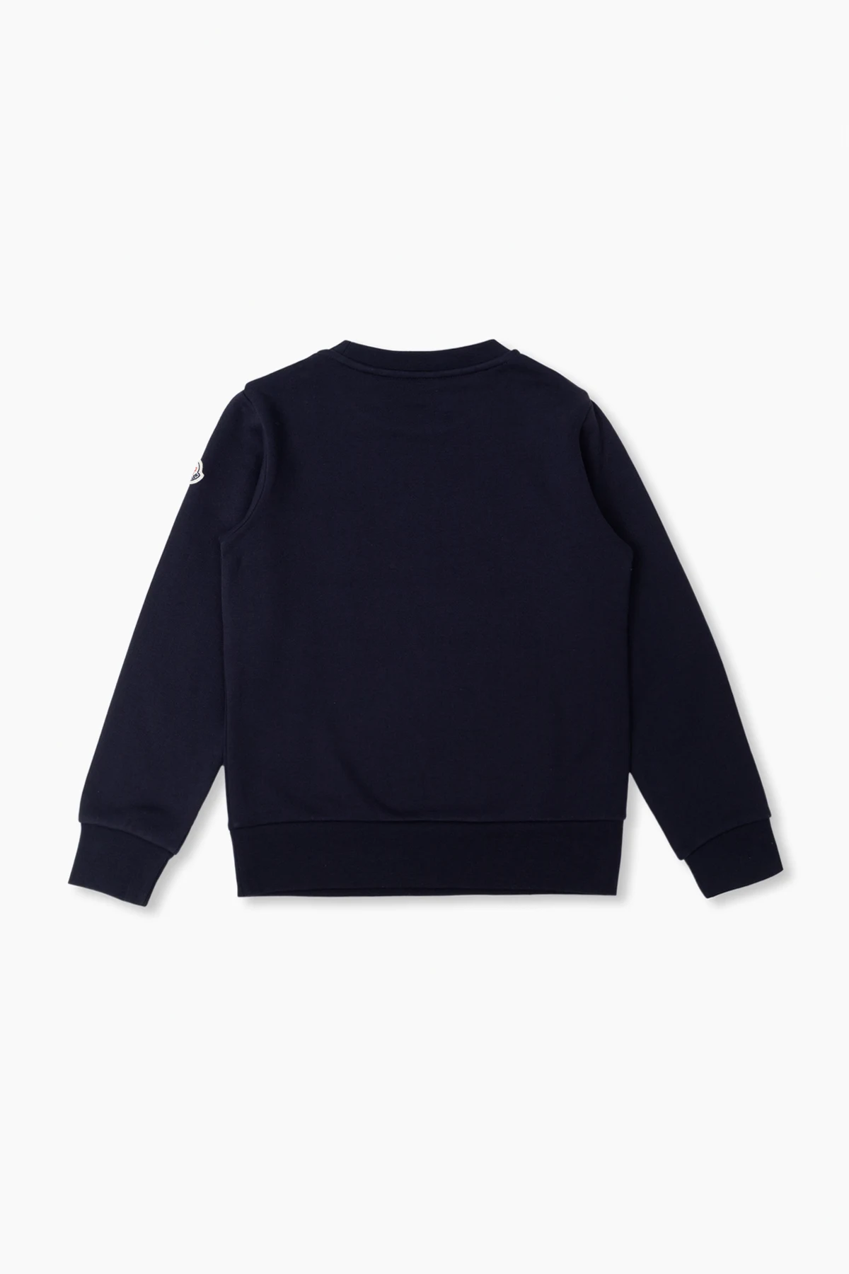 Granatowa bluza Moncler Enfant. Wykonana z bawełny. Ozdobiona wzorem z wykończeniem typu 'frotte'. Okrągły dekolt, długie rękawy i dół wykończony ściągaczem.