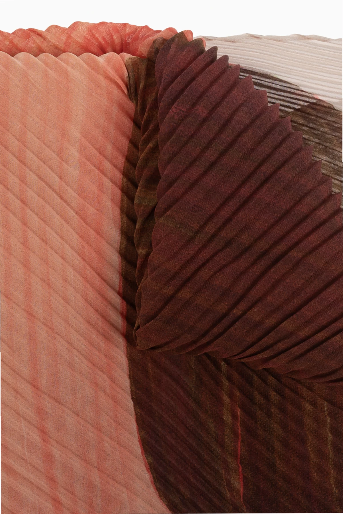 Przedstawiamy Państwu plisowany szal z ekskluzywnej kolekcji odzieżowej renomowanego projektanta Homme Plissé Issey Miyake . Ten wyjątkowy dodatek wyróżnia się swoim prostokątnym kształtem oraz plisowanym wzorem, który nadaje mu trójwymiarowy wygląd i niezwykłą teksturę.