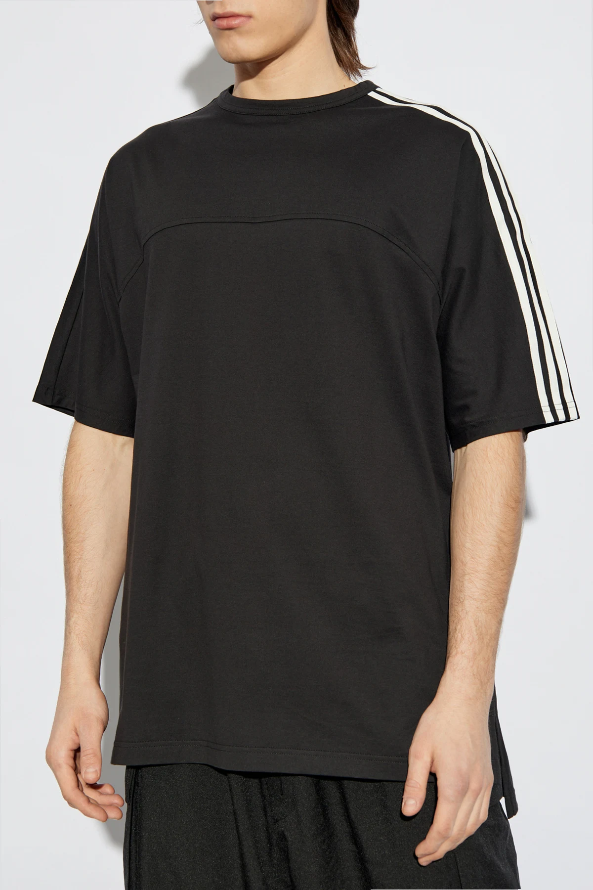 Dominujący czarny kolor, klasyczny krój z krótkim rękawem i okrągłym dekoltem czynią tę koszulkę nieodłącznym elementem każdej stylizacji. Subtelny biały pasek na ramieniu dodaje jej sportowego wyrazu, zaś dyskretne logo "Y-3" poniżej linii ramion podkreśla prestiż i wyjątkowość produktu.