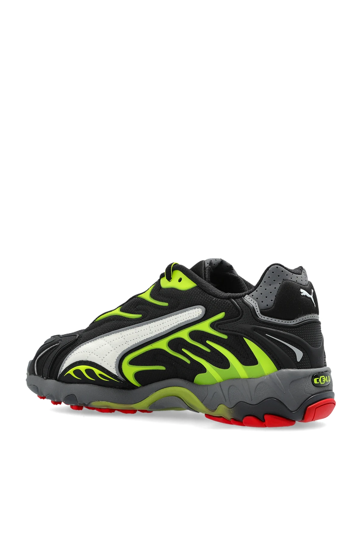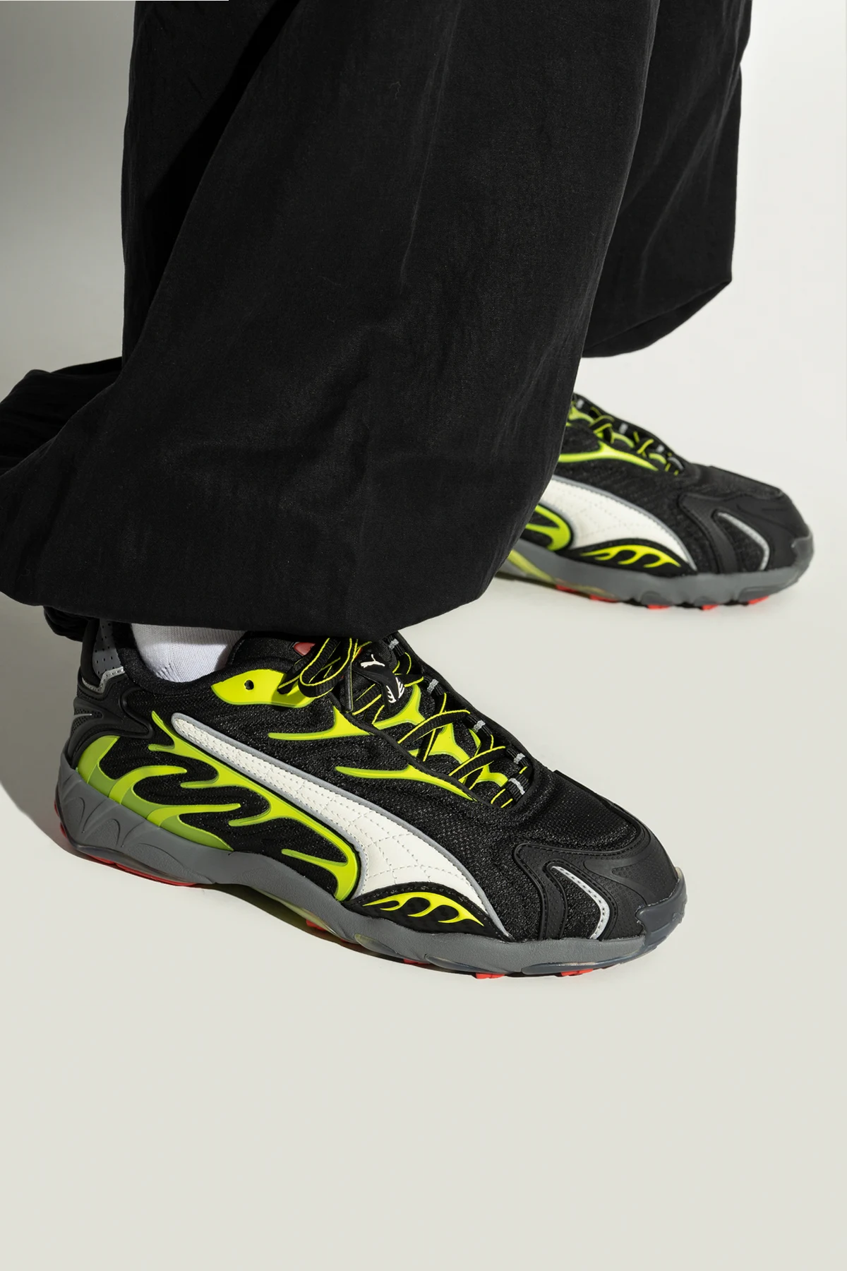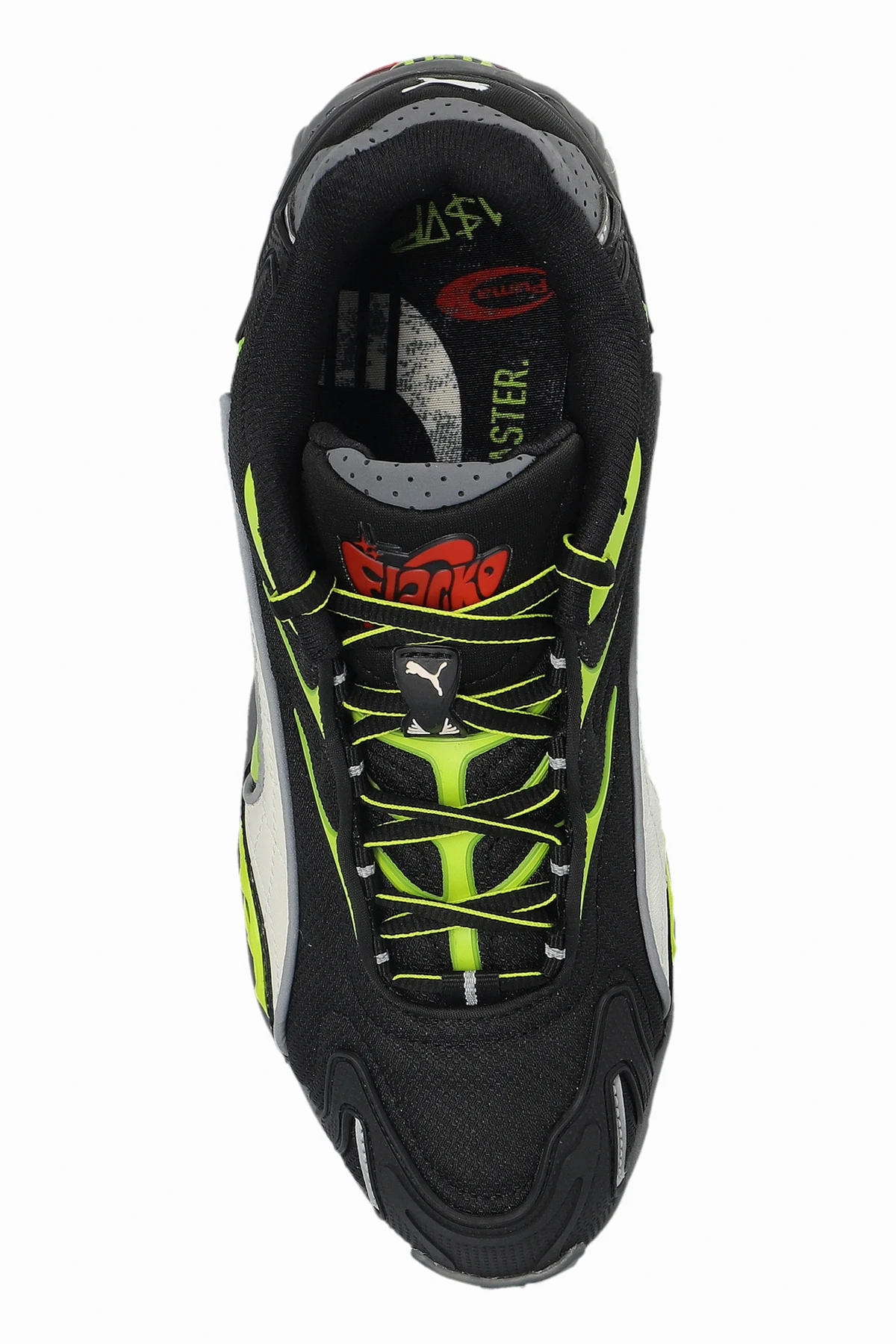 Przedstawiamy unikatowe sneakersy Puma x A$AP Rocky , które łączą w sobie nowoczesny design i dynamiczną estetykę. Wykonane z połączenia wysokiej jakości tkaniny i elementów syntetycznych , oferują niezwykłą wytrzymałość i lekkość. Dominujący czarny kolor został wzbogacony o zielone płomienie oraz białe akcenty, a całość dopełnia czerwony detal na podeszwie.