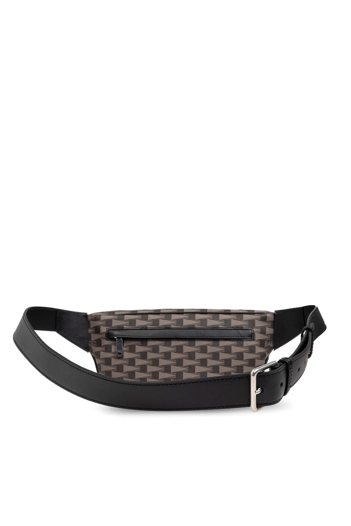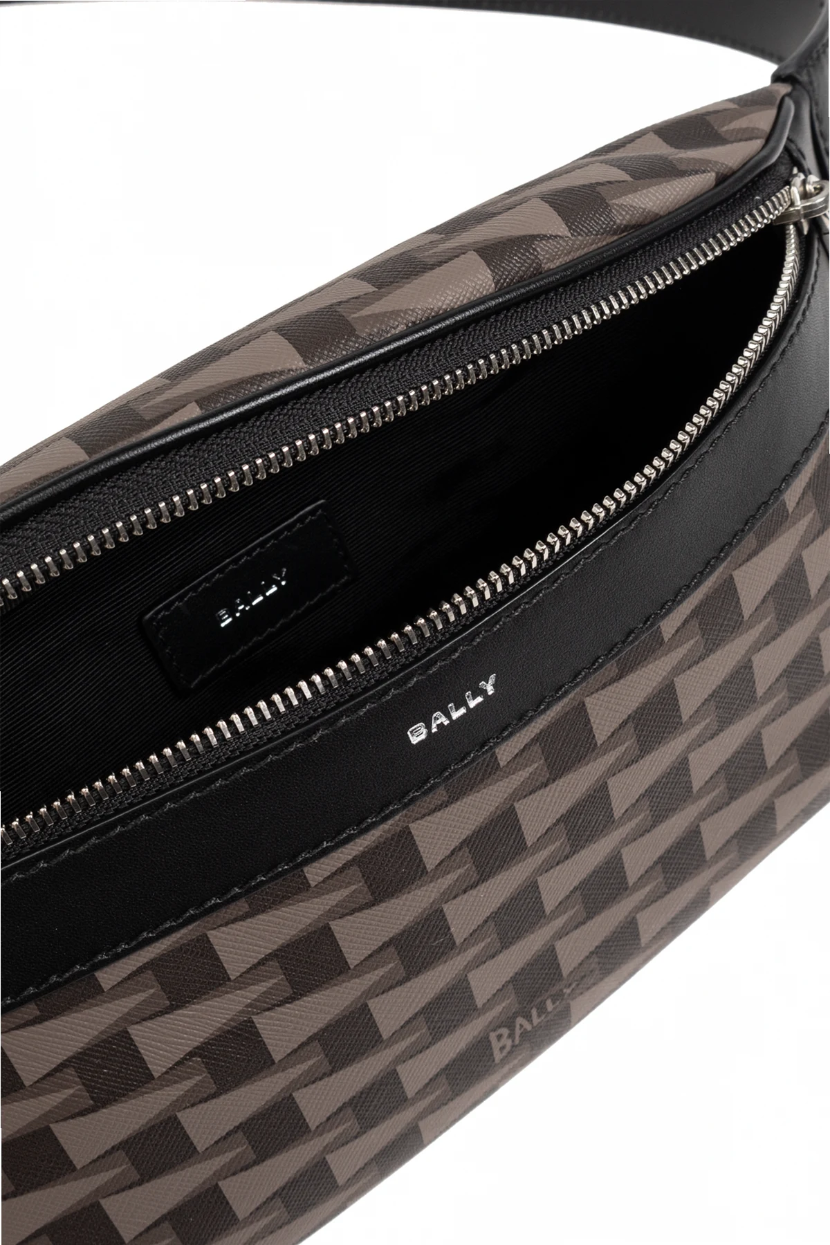 Detale torby, takie jak solidny metalowy zamek błyskawiczny w kolorze srebrnym oraz srebrne logo "BALLY" na czarnym pasku materiału, podkreślają jej luksusowy design. Dodatkowa kieszeń zapinana na zamek na tylnej stronie zwiększa funkcjonalność, a regulowany pasek w kolorze czarnym umożliwia noszenie torby na różne sposoby – na biodrach lub przez ramię.