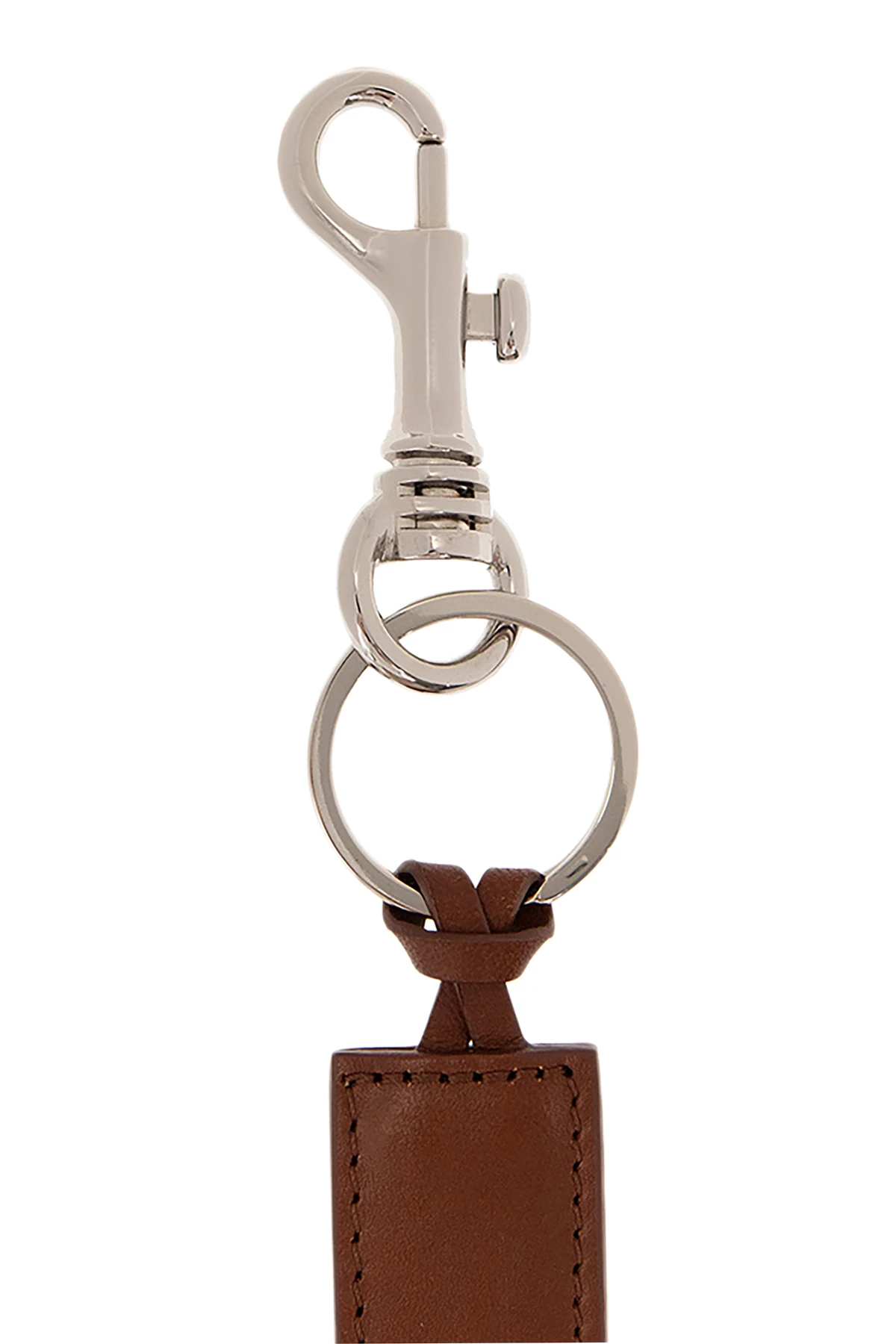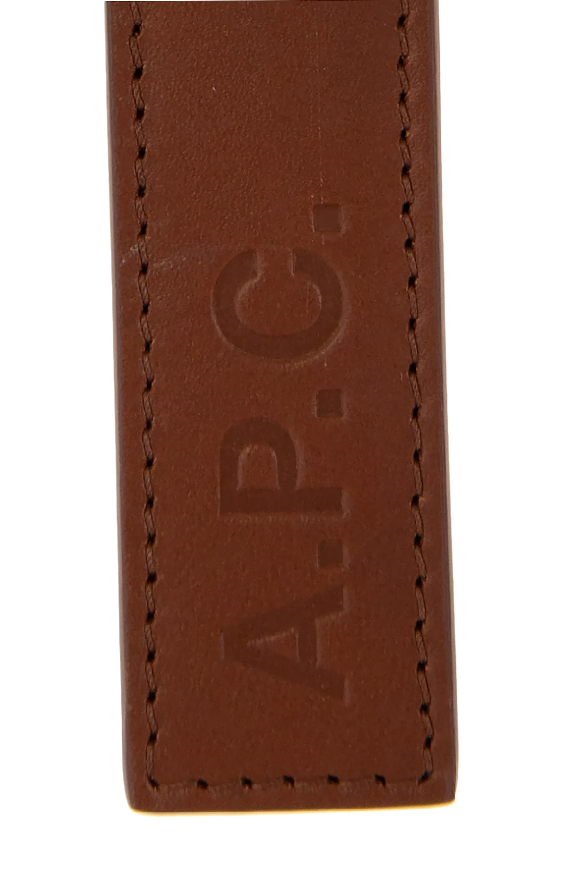 Brelok w kolorze srebrnym A.P.C. Ozdobiony skórzaną zawieszką z wytłoczonym logo. Wykończony karabińczykiem.