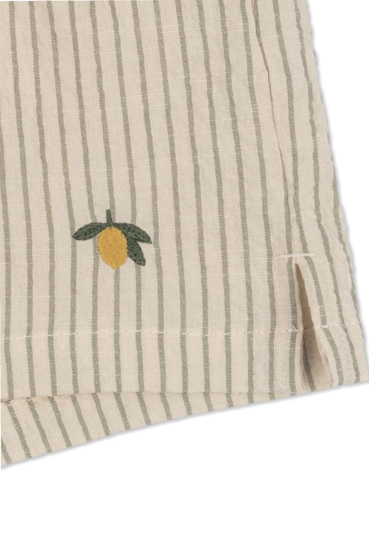 Ekskluzywny design z subtelnie haftowaną cytryną dodającą szortom unikatowego charakteru.