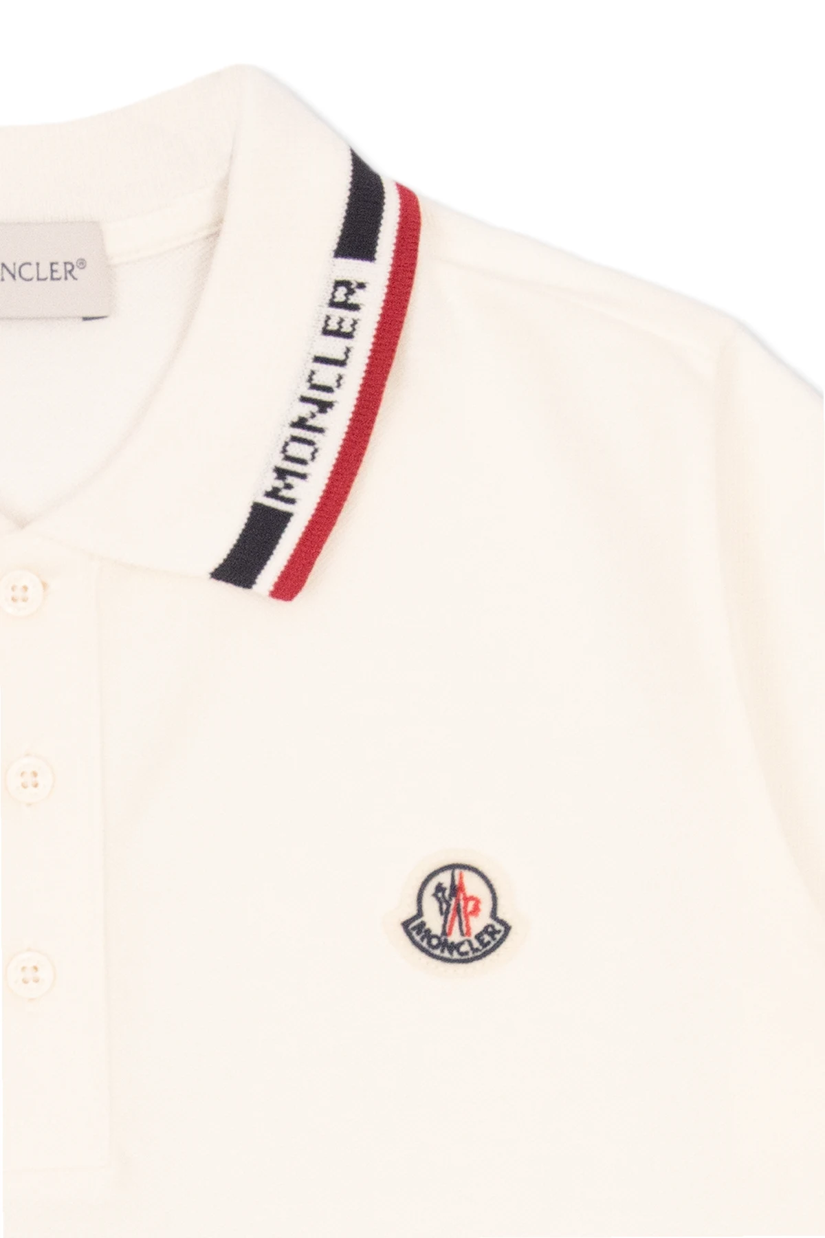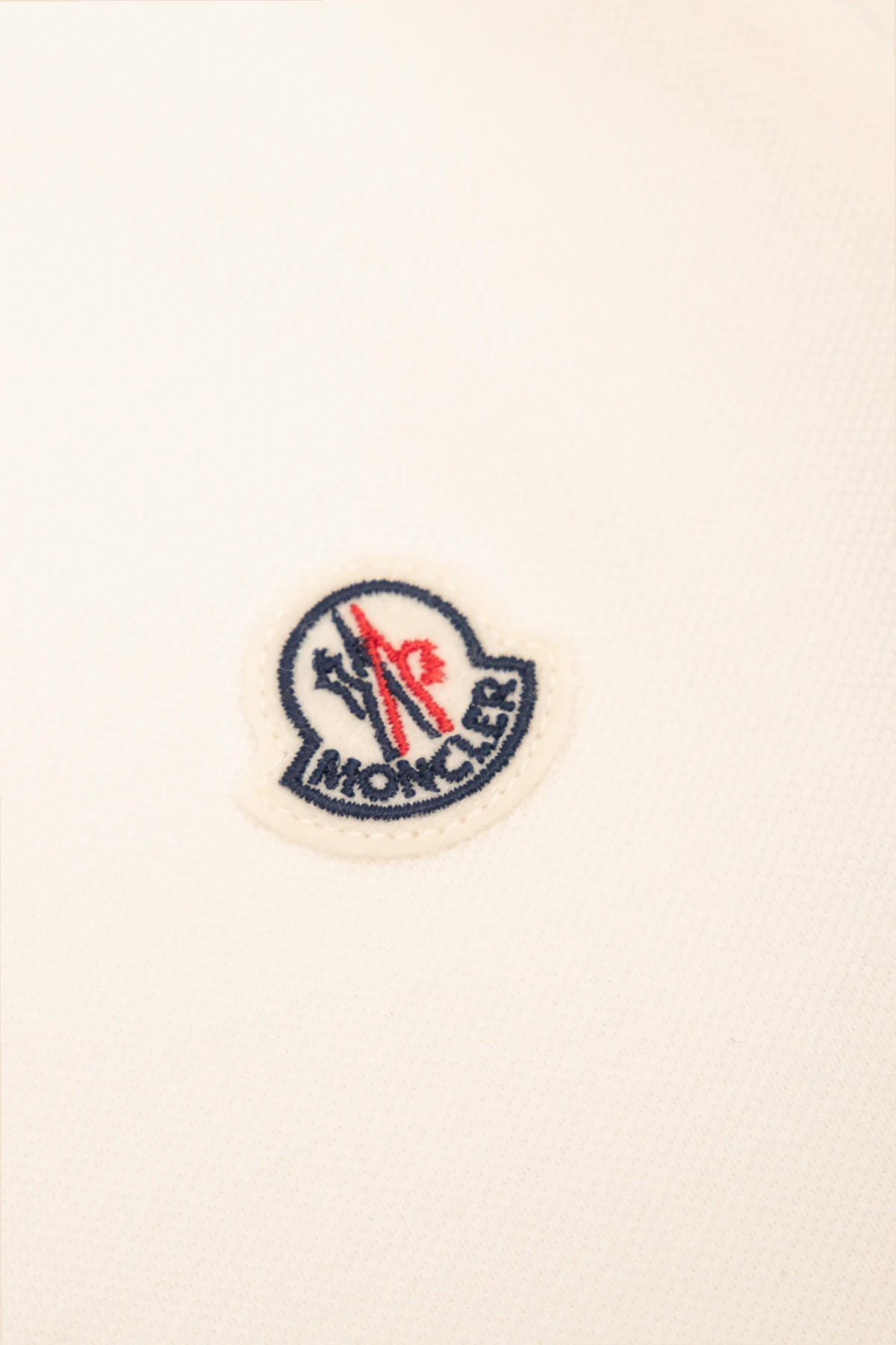 Koszulka olśniewa swoim subtelnym, kremowym odcieniem, będącym tłem dla charakterystycznego, elegancko sportowego akcentu w postaci granatowo-czerwono-granatowych pasków na kołnierzyku i rękawach. Klasyczny kołnierzyk polo, krótkie rękawy oraz plisa z rzędem białych guzików podkreślają uniwersalność tego modelu. Dodatkowym atutem jest dyskretna naszywka z logo Moncler Enfant na lewej piersi oraz haft z nazwą marki na kołnierzyku, które nadają całości wyjątkowego prestiżu.