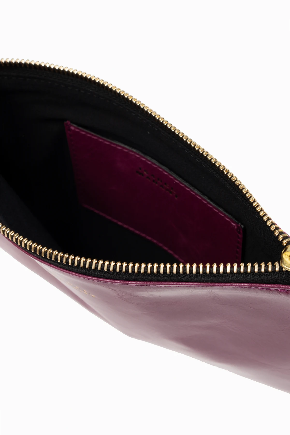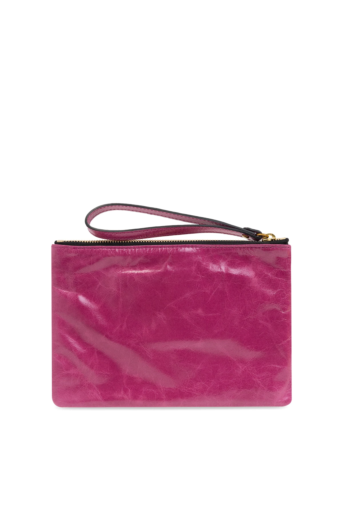 Detale produktu zostały starannie przemyślane: na przedniej stronie torby znajduje się mały, złoty napis z nazwą marki, a zamek błyskawiczny w kolorze złotym idealnie współgra z logiem. Torba wyposażona jest w cienki pasek na nadgarstek, który zapewnia wygodę noszenia.