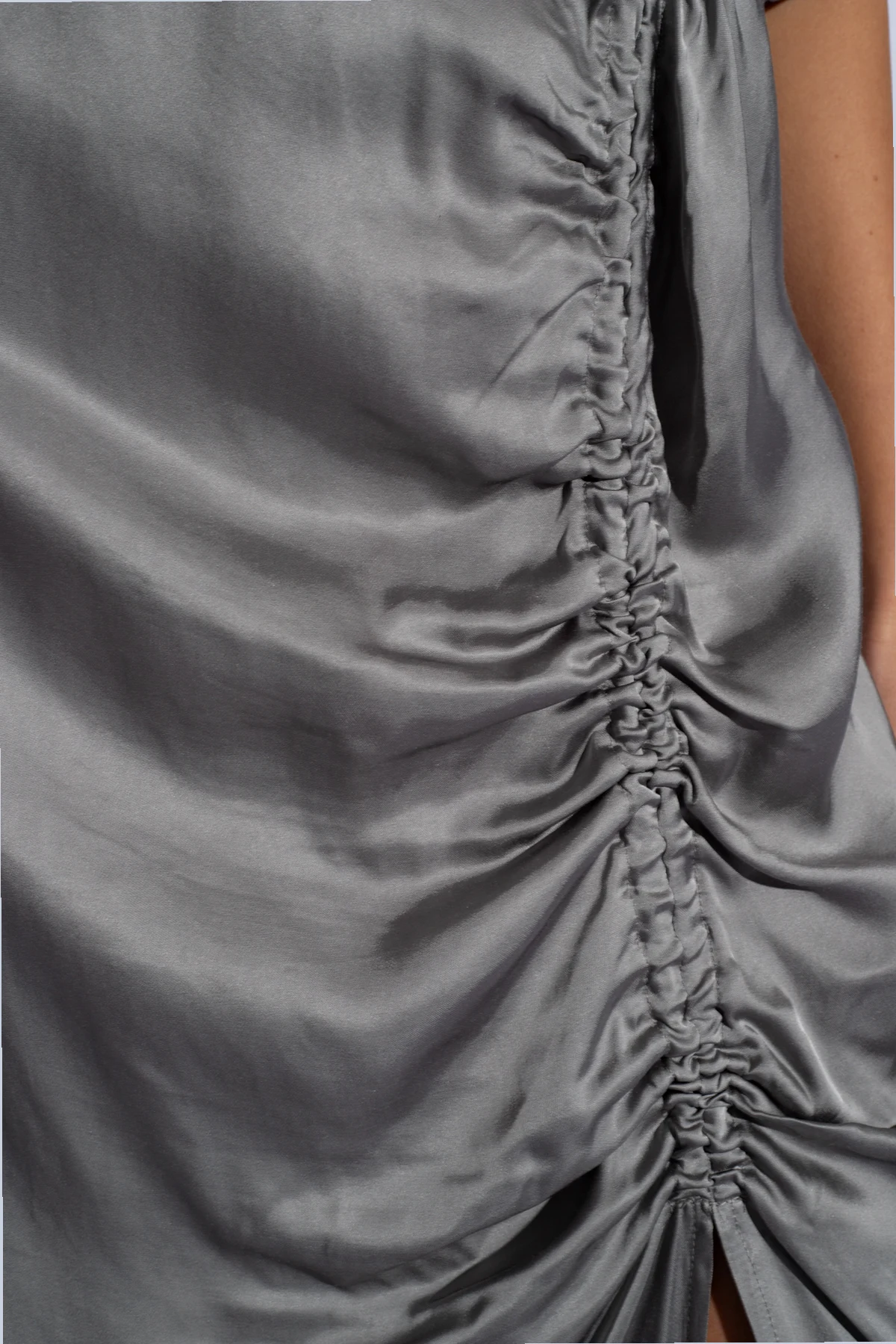 Elegancja i subtelna zmysłowość definiują satynową sukienkę ‘Sabastian’ od renomowanego projektanta HERSKIND . Wyrafinowana w każdym szczególe, ta kreacja urzeka głębią szarości, której odcienie mienią się na połyskującej powierzchni materiału, tworząc niepowtarzalny efekt wizualny.