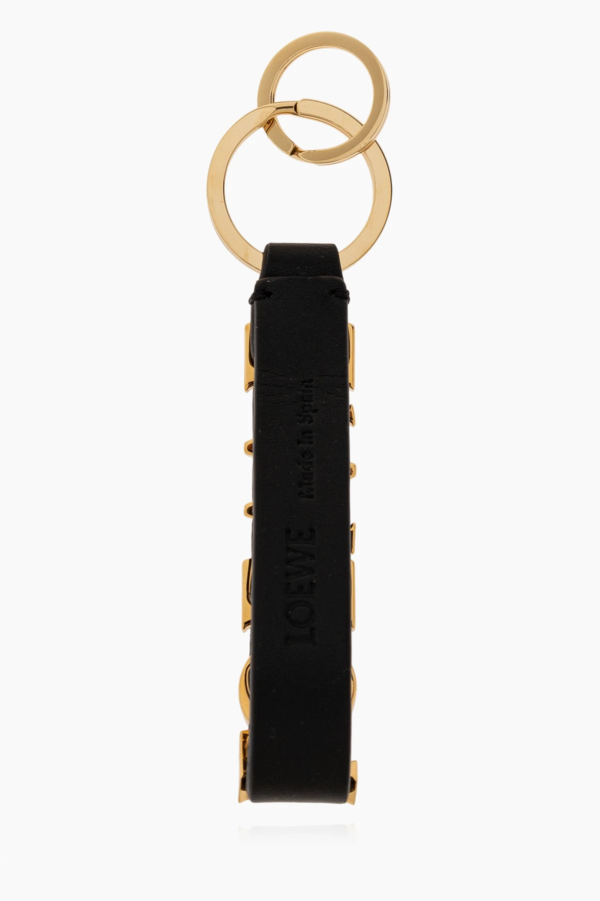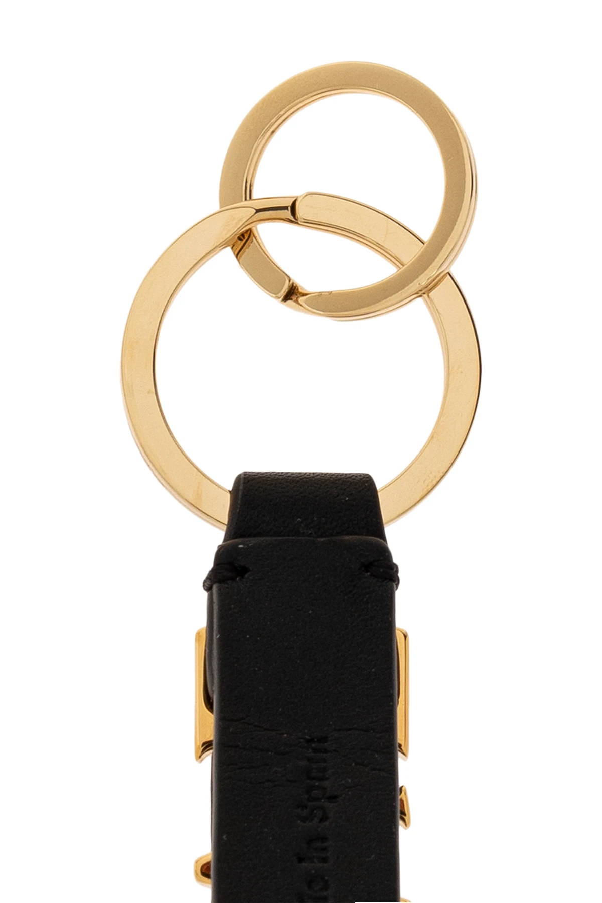 Złote detale, w tym dwa eleganckie pierścienie do przypięcia kluczy, harmonijnie współgrają z głębią czerni, tworząc akcesorium uniseksowe, które doskonale dopasuje się do różnorodnych stylów i preferencji. Jakość materiałów użytych do stworzenia tego breloka, zarówno mosiądzu, jak i skóry, odzwierciedla standardy, jakich można oczekiwać od wiodących projektantów mody.