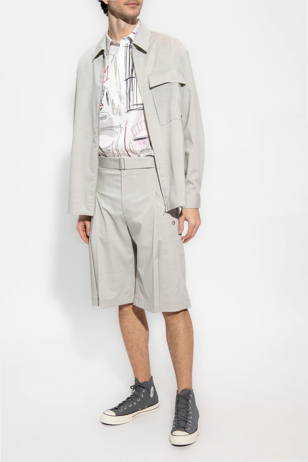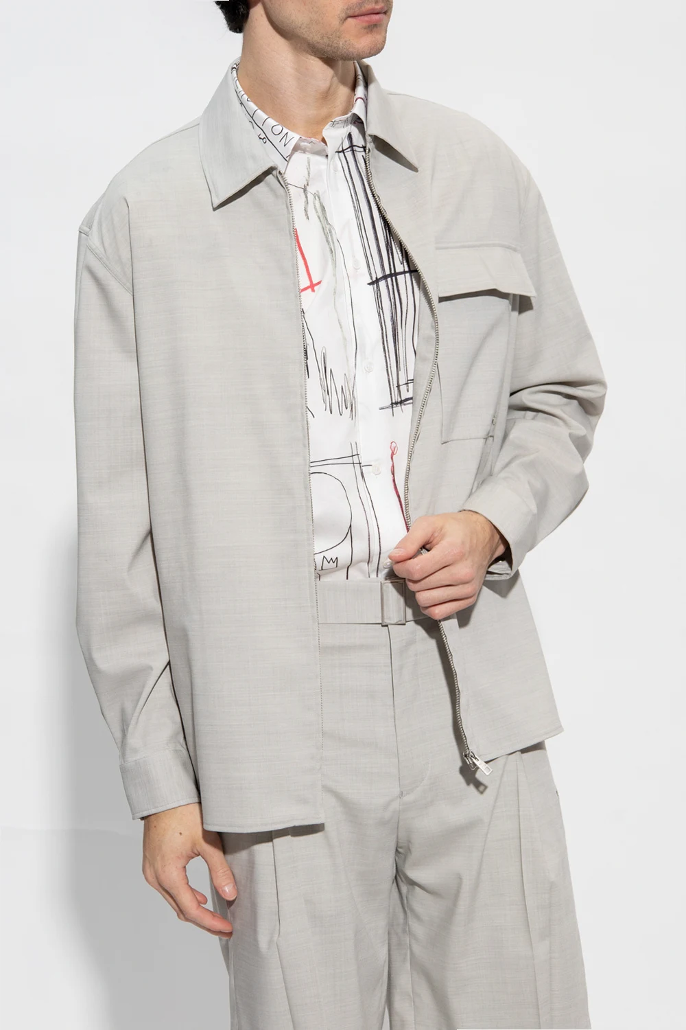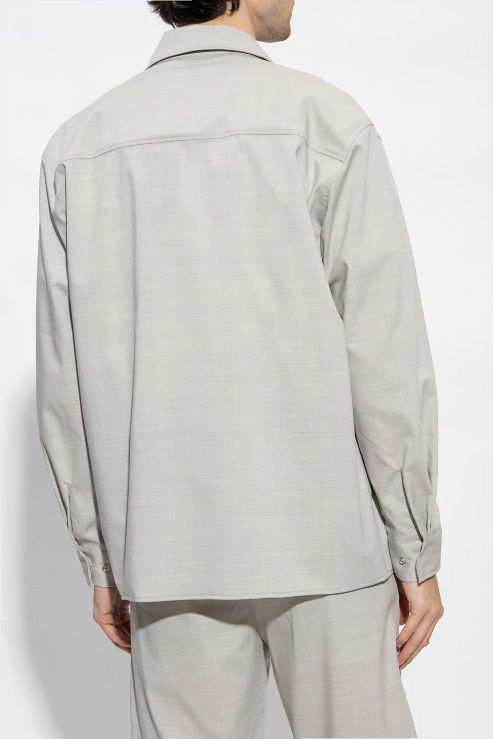 Szara koszula Etudes. Wykonana z wełny. Zapinana na zamek. Kieszeń z patką. Długie rękawy.