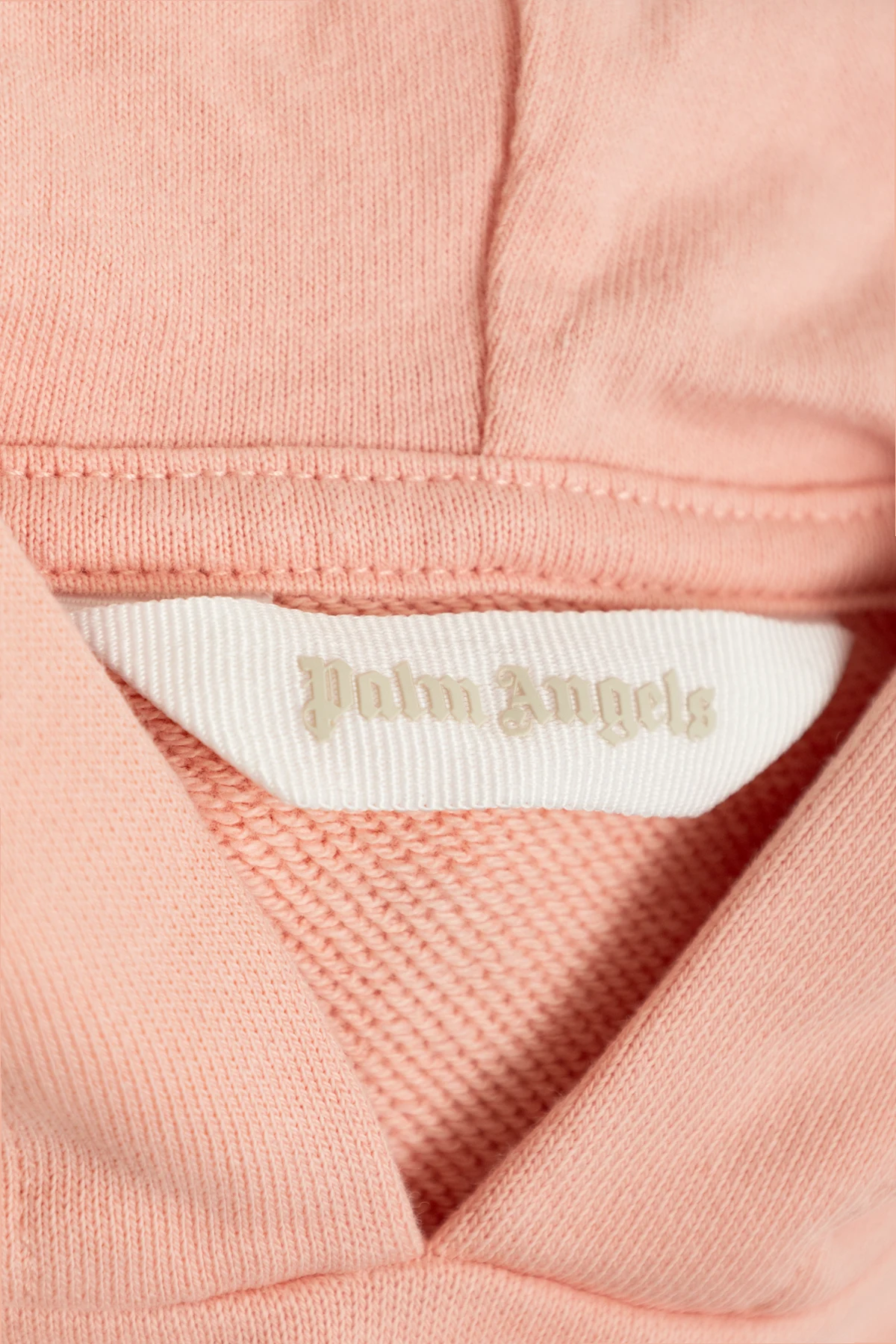 Na piersi, po lewej stronie, znajduje się subtelne białe logo Palm Angels , a z tyłu, na wysokości ramion, duże białe logo marki w charakterystycznym gotyckim stylu pisma. Wewnątrz kaptura wszyta jest metka z logo Palm Angels , co potwierdza autentyczność produktu.