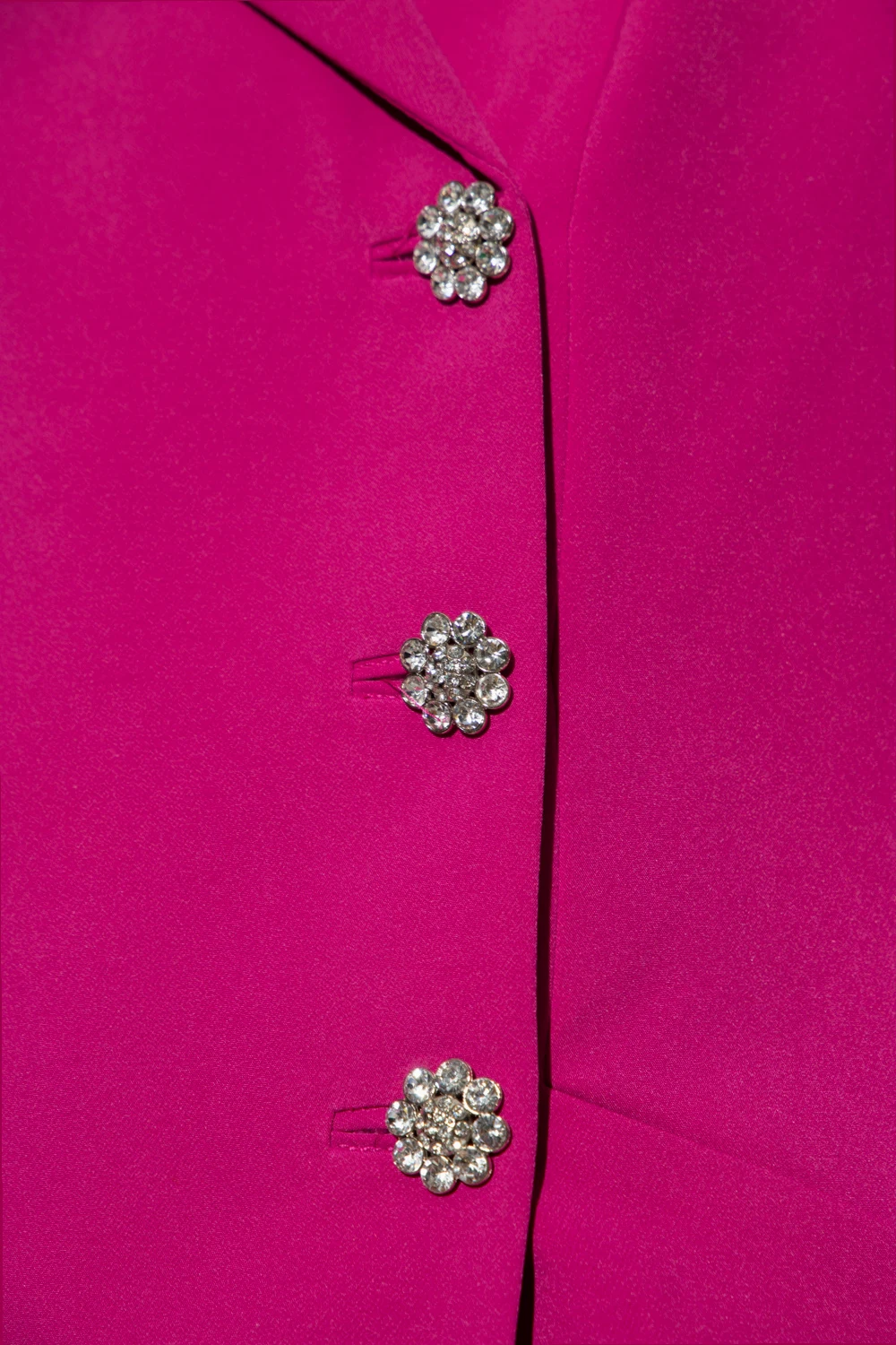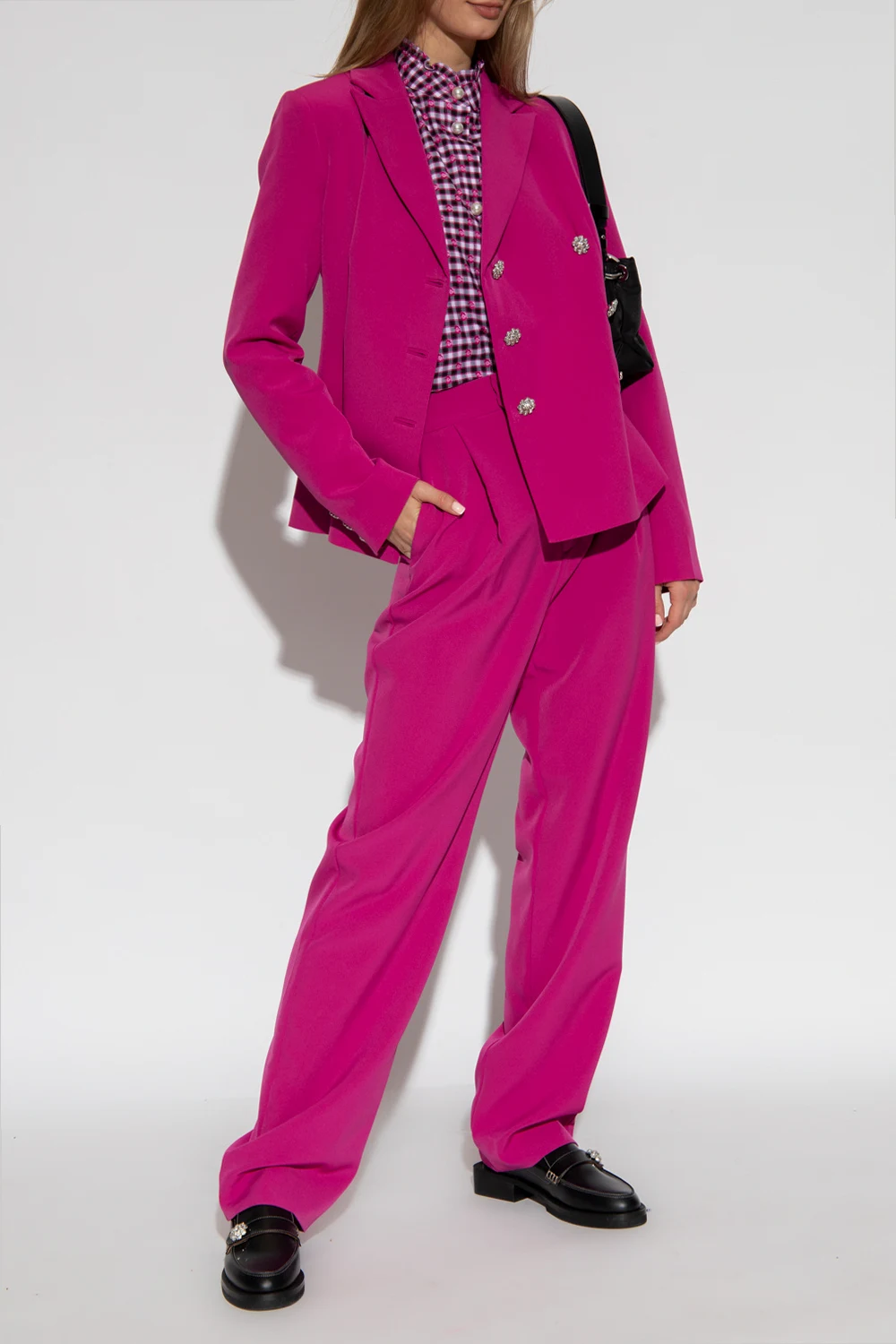 Różowa, dwurzędowa marynarka z otwartymi klapami, model 'Finja’ Custommade. Zapinana na połyskujące guziki. Z przodu dwie kieszenie. Długie rękawy.