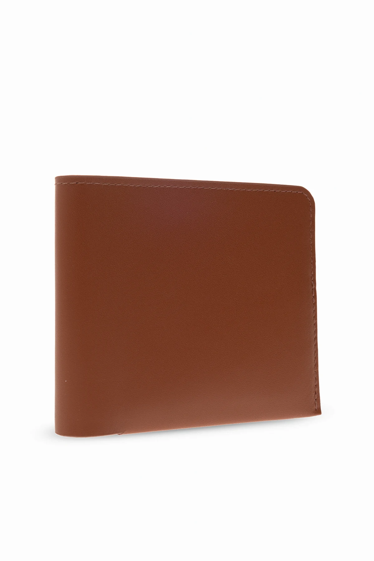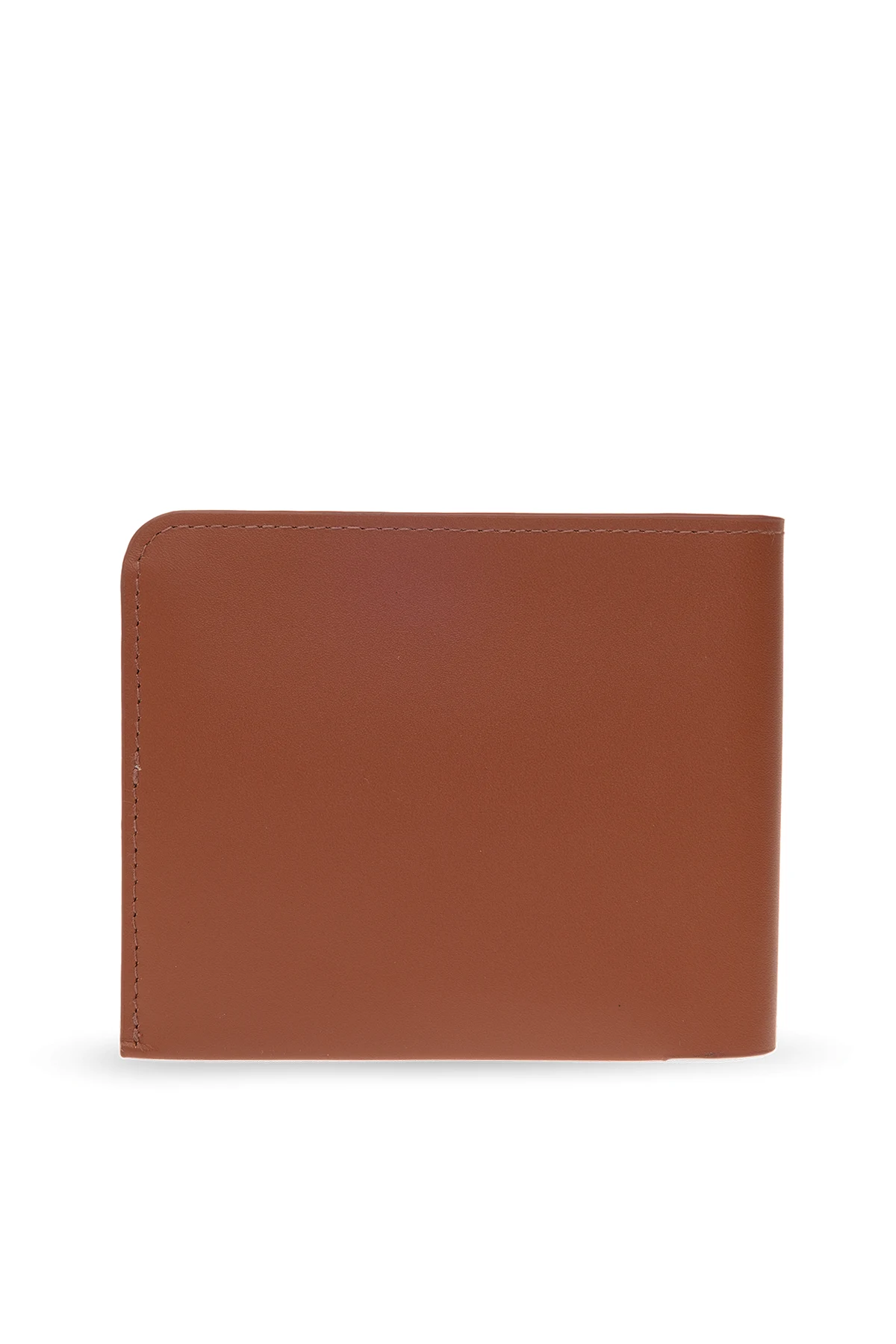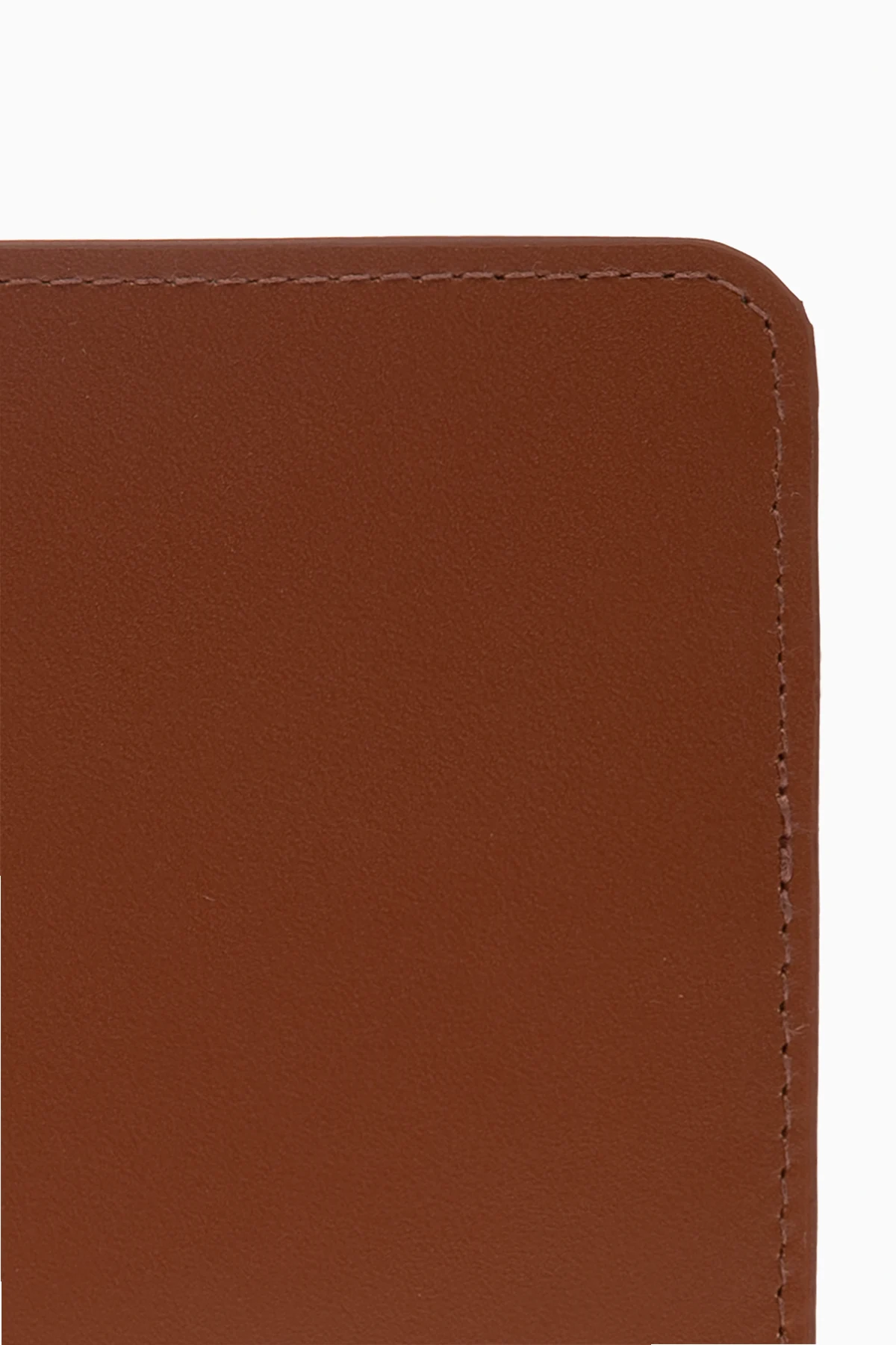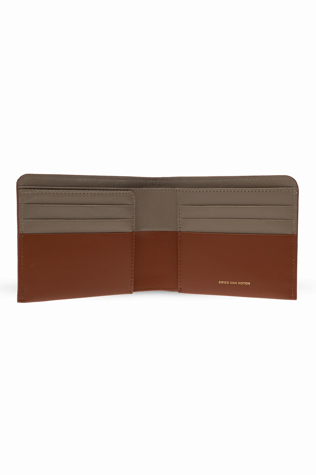 Brązowy, składany portfel Dries Van Noten. Wykonany ze skóry. Warstwa wewnętrzna w kolorze szaro-brązowym. Wewnątrz kieszeń na banknoty, dwie wsuwane kieszenie i sześć miejsc na karty.