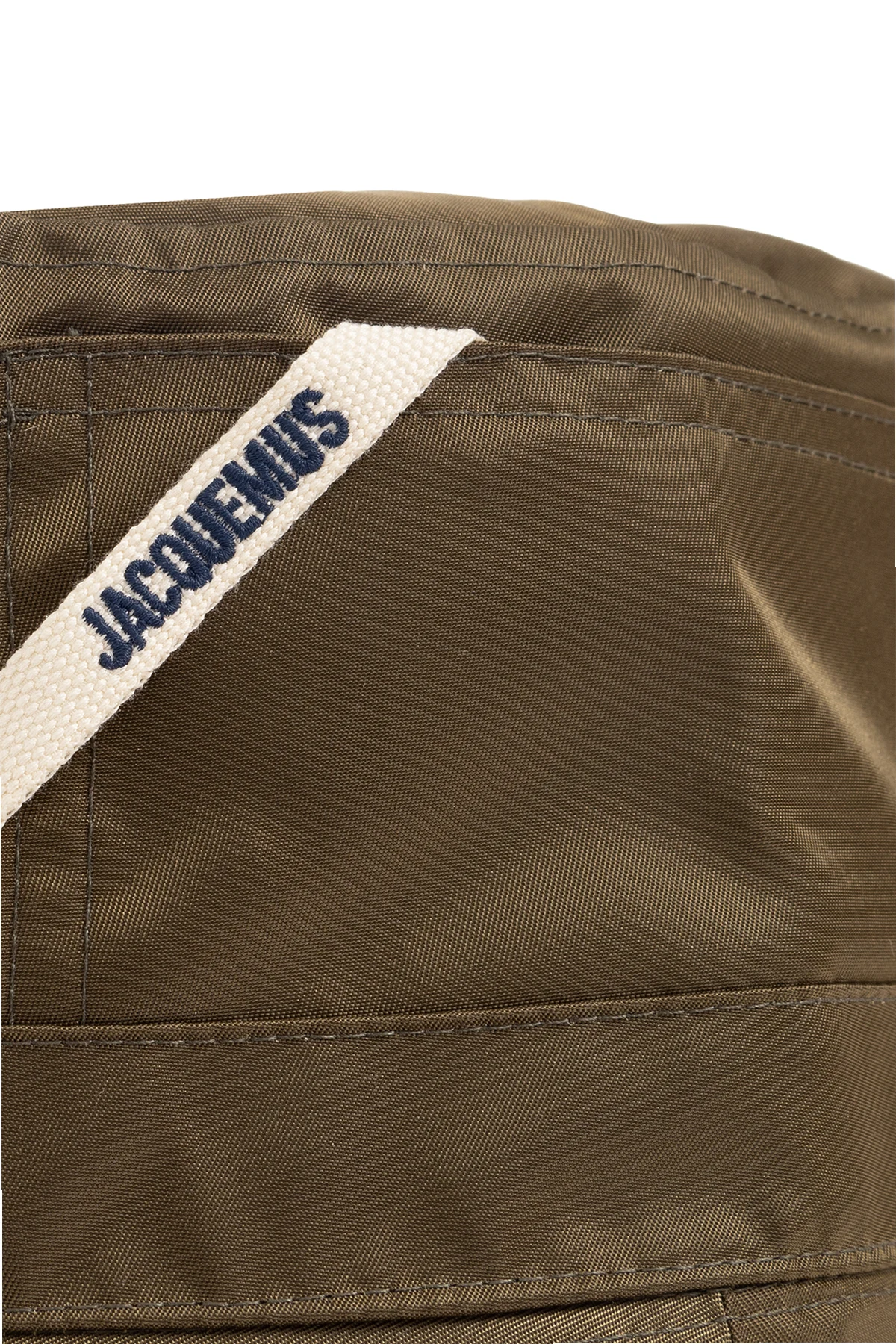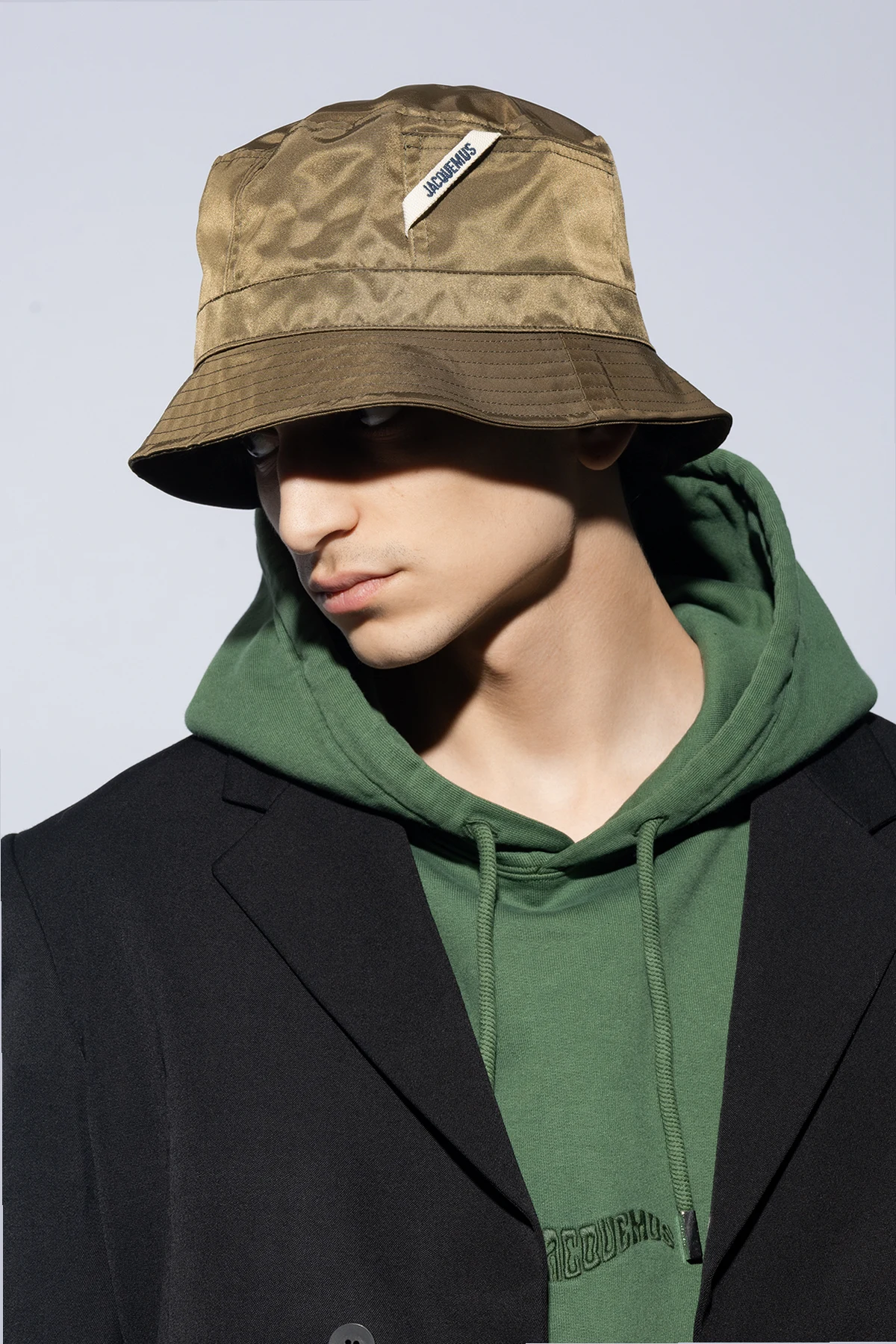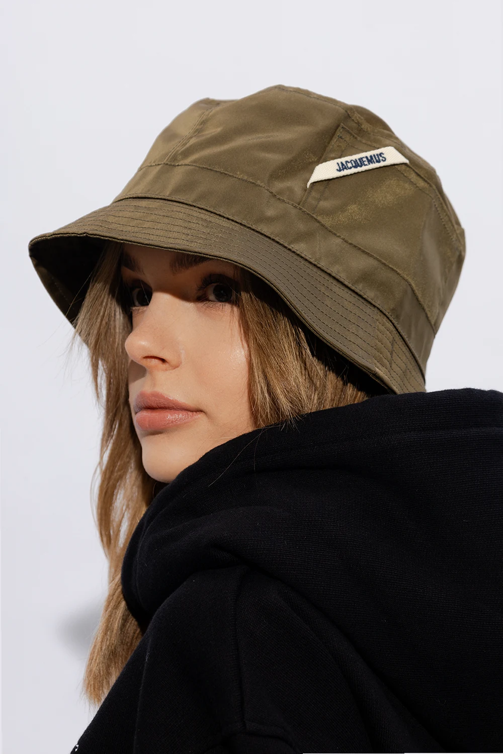 Ciemnozielony kapelusz Jacquemus. Wykonany z lekko połyskującego materiału. Ozdobiony naszywką z logo. Z boku metalowe detale i wsuwana kieszeń.