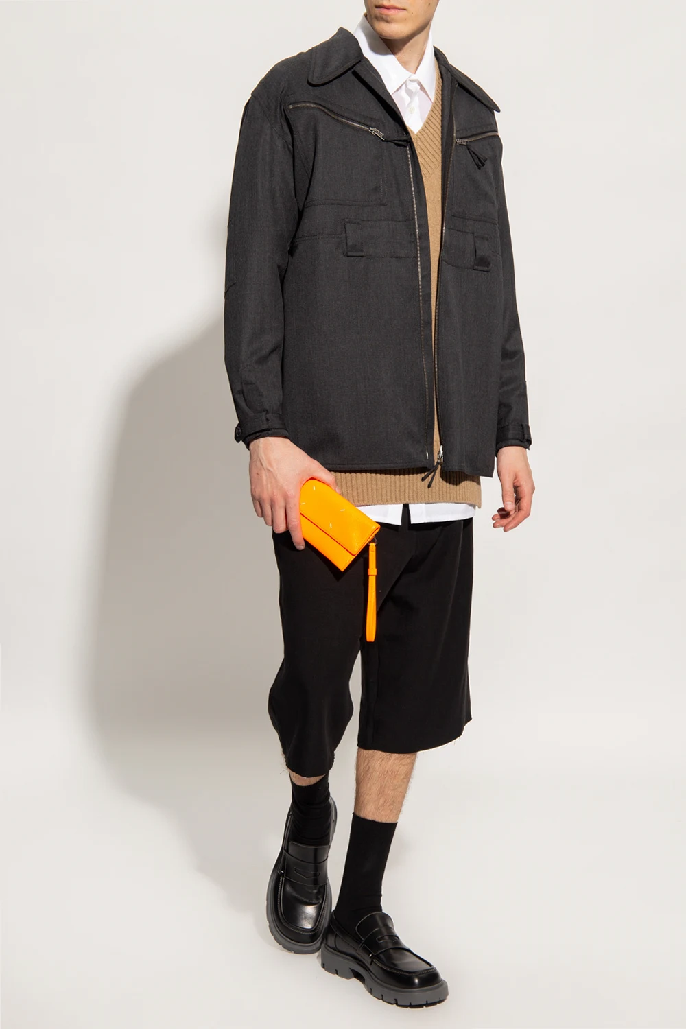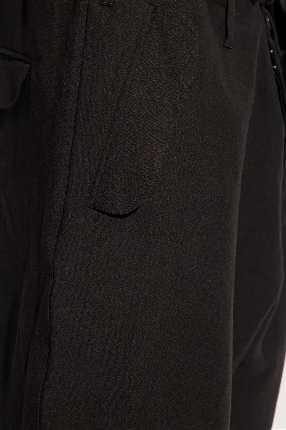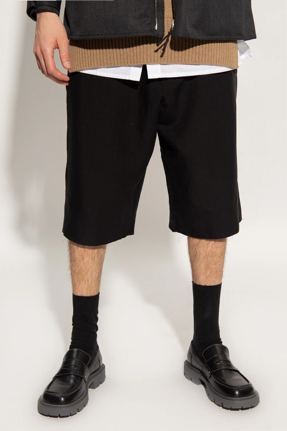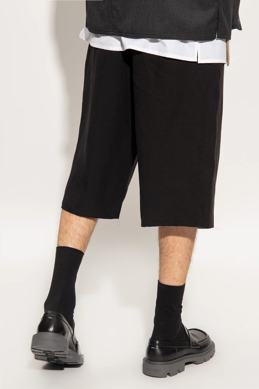 Czarne szorty Maison Margiela. Zapinane na guziki i zaczep. W pasie ściągane trokami. Z tyłu wyszyte logo w kolorze białym. Cztery kieszenie z patką: dwie z przodu i dwie z tyłu.