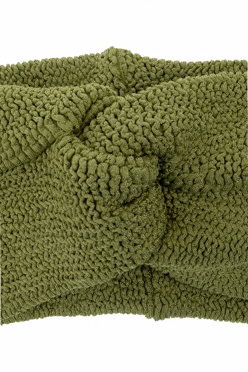 Zielona, prążkowana opaska na głowę Bond-Eye. Z przodu dekoracyjne wiązanie.