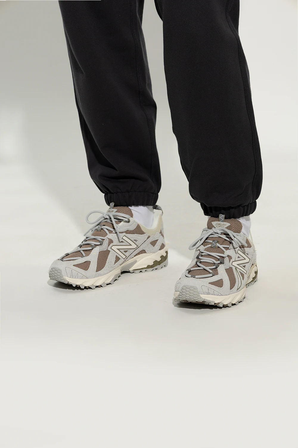 Kremowo-szare, sznurowane buty sportowe, model ‘ML610TE’ New Balance. Wykonane ze skóry i materiału. Ozdobione aplikacją z logo. Biało-kremowa, gumowa podeszwa.