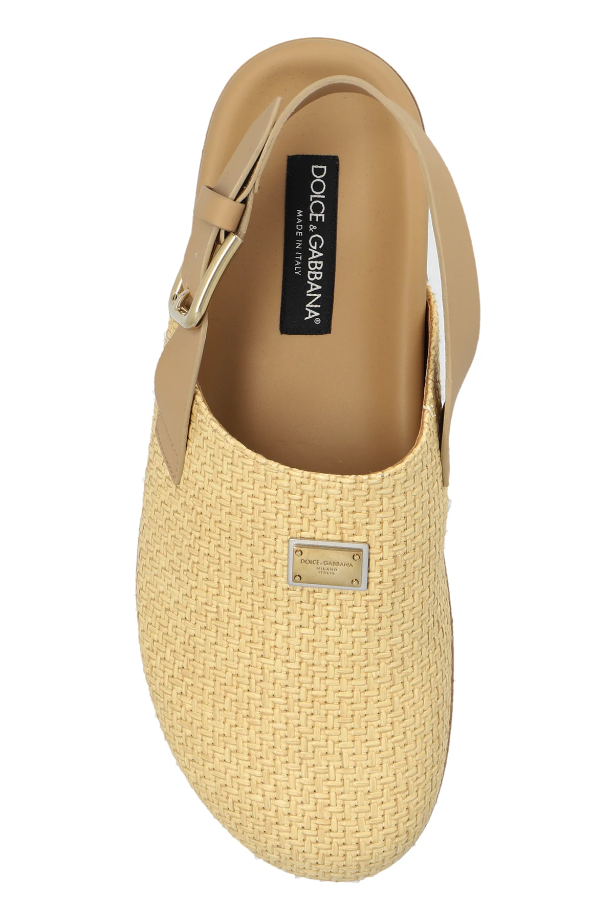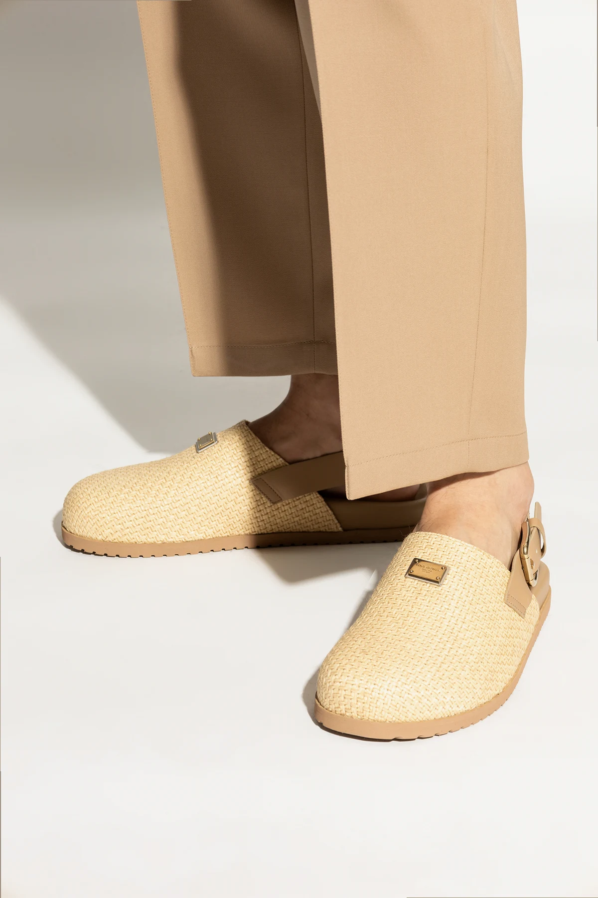 Zachwycająca symbioza klasyki i współczesnego designu, klapki z aplikacją od Dolce & Gabbana , emanują nie tylko luksusem, ale i bezkompromisowym komfortem. Ich kremowo-beżowy odcień, będący kwintesencją elegancji, sprawia, że obuwie to staje się uniwersalnym dodatkiem do wielu stylizacji.