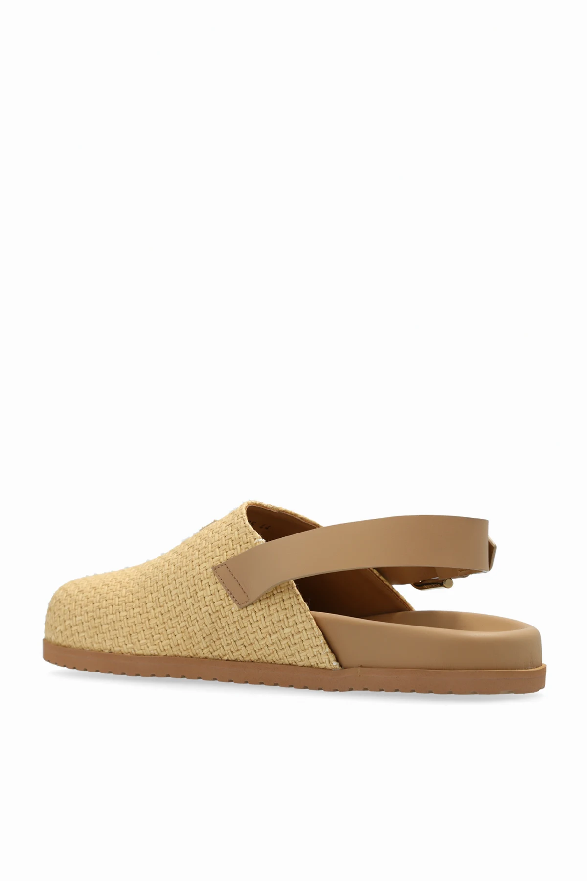 Wykonane z najwyższej jakości plecionej skóry , klapki te charakteryzują się nie tylko wyjątkową trwałością, ale i niepowtarzalną teksturą. Wewnętrzna warstwa, w całości skórzana, gwarantuje niezrównany komfort noszenia, a podeszwa z 100% gumy zapewnia stabilność i bezpieczeństwo na każdej powierzchni. Subtelny detal w postaci metalowego logo projektanta na wierzchu cholewki, a także elegancki, regulowany pasek z tyłu z metalową klamrą, podnoszą walory estetyczne tego obuwia, czyniąc je wyraźnym sygnałem wyrafinowanego gustu.