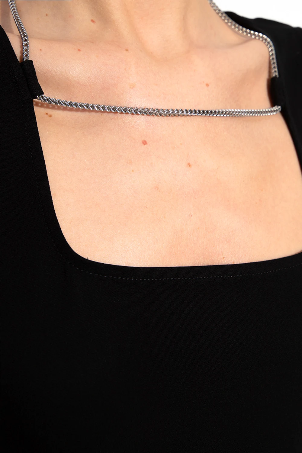 Czarny top na ramiączkach 1017 ALYX 9SM. Wykonany z wiskozy. Z boku kryty zamek. Dołączony łańcuch w kolorze srebrnym.