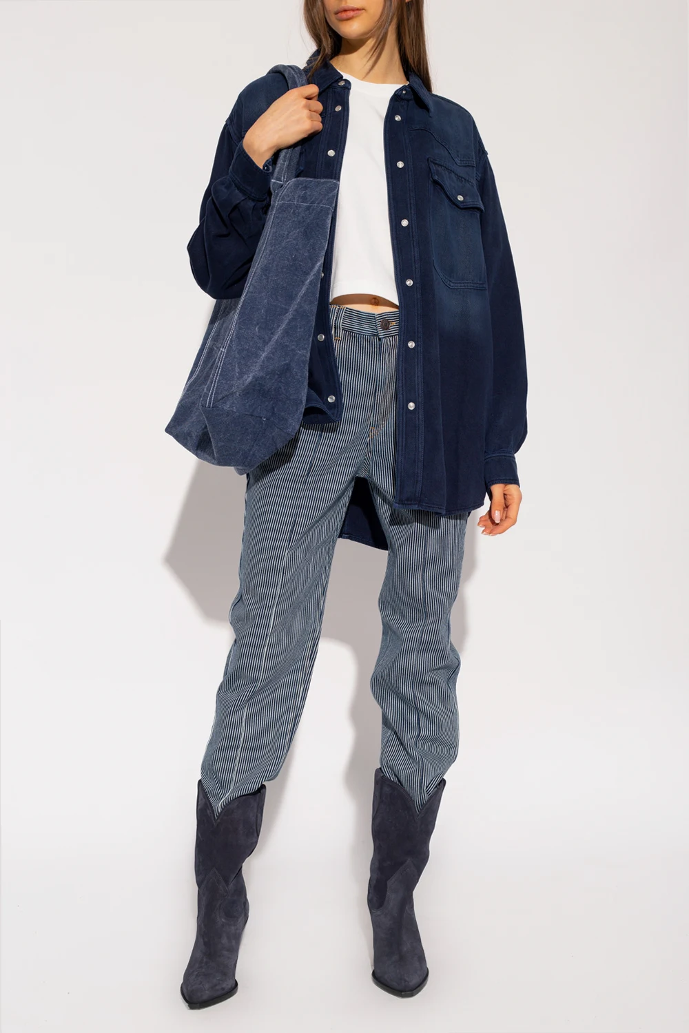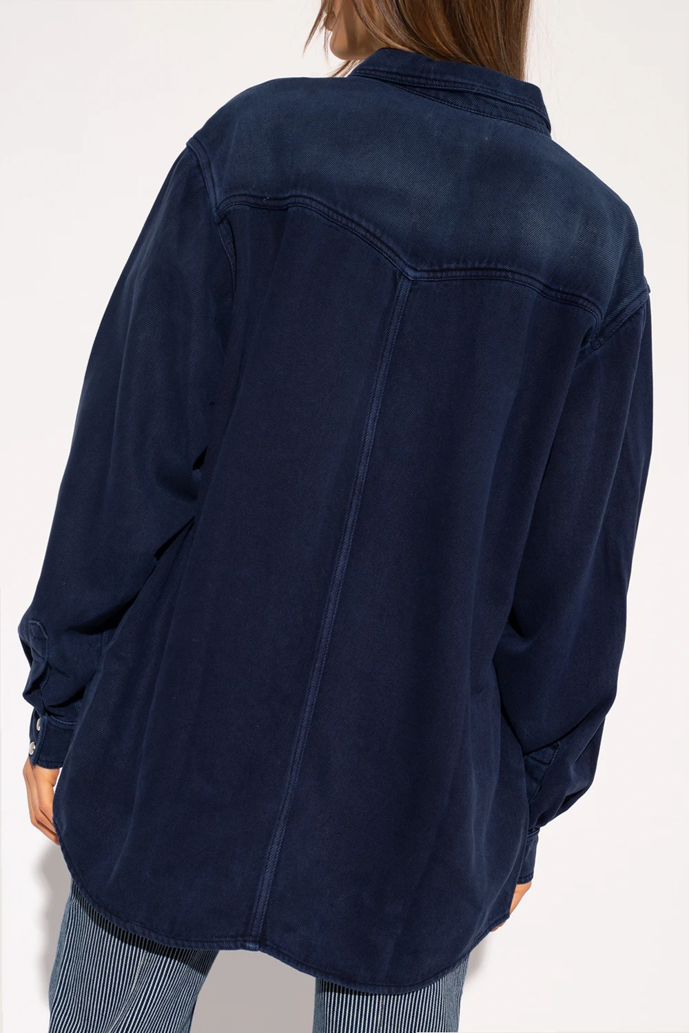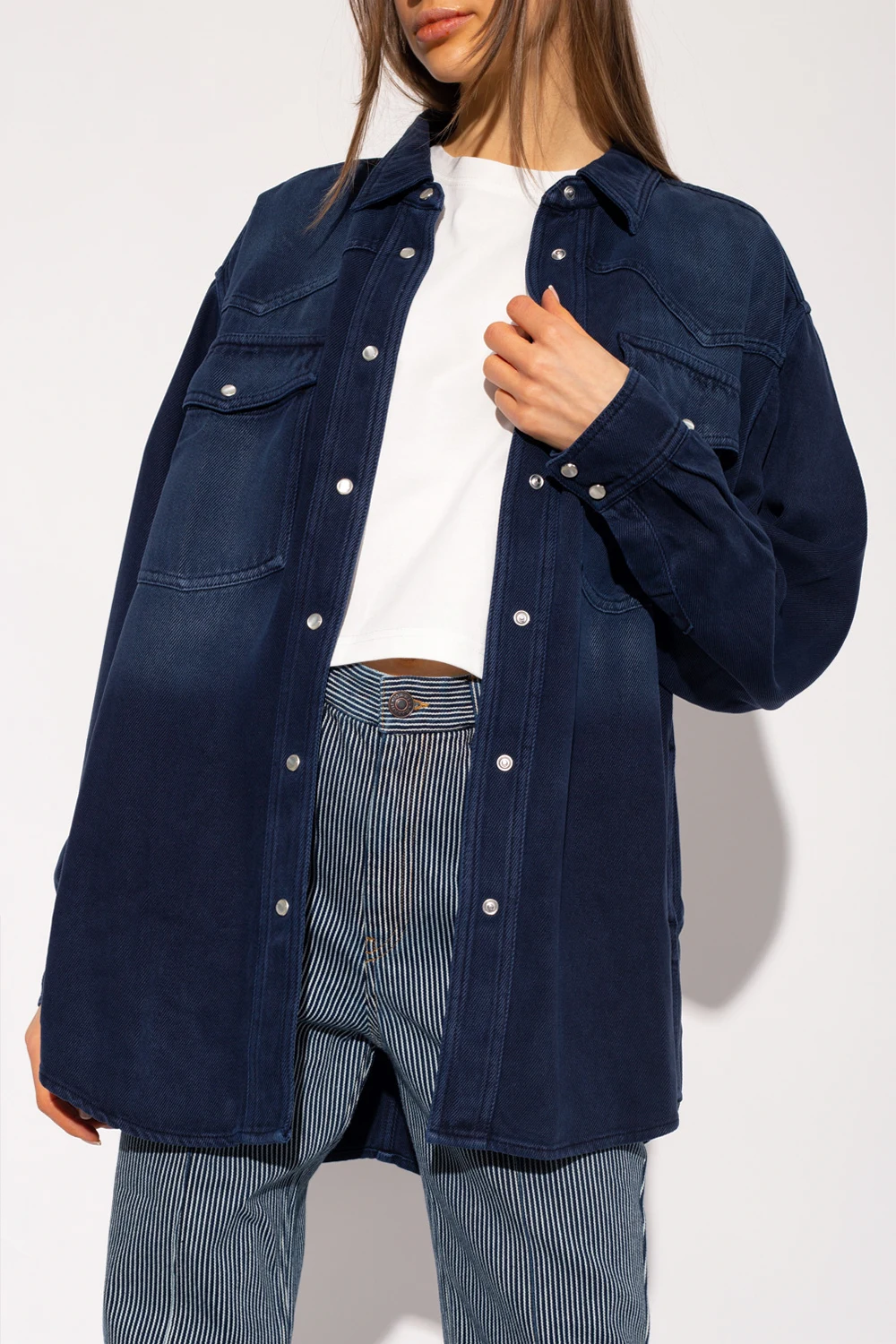 Granatowa koszula, model ‘Taniami’ Isabel Marant Étoile. Zapinana na zatrzaski. Z przodu dwie kieszenie z patką zapinaną na zatrzask. Długie rękawy, mankiety zapinane na zatrzask.