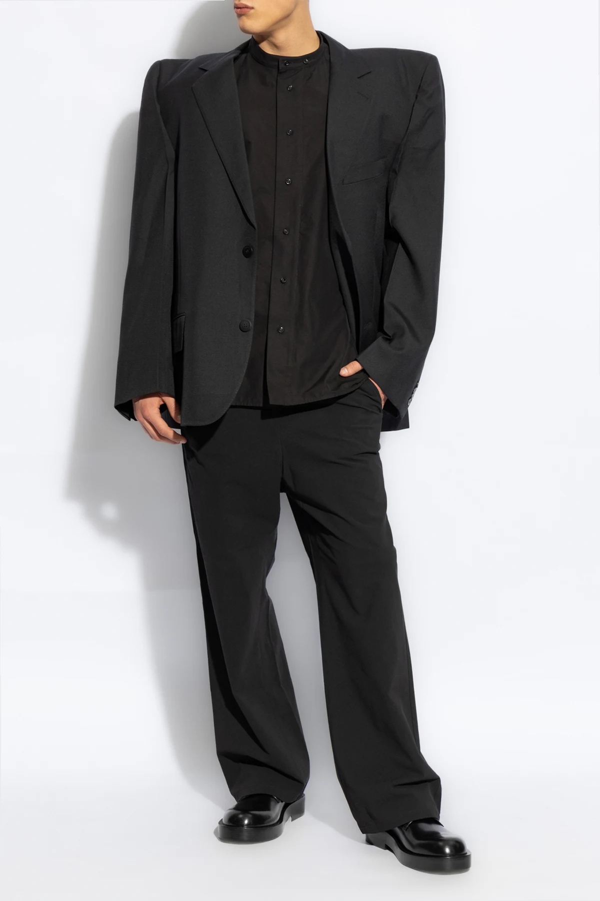 Brak kieszeni i subtelną elegancję podkreślający kołnierzyk typu "mandarynka" wyróżniają ten model na tle innych propozycji.