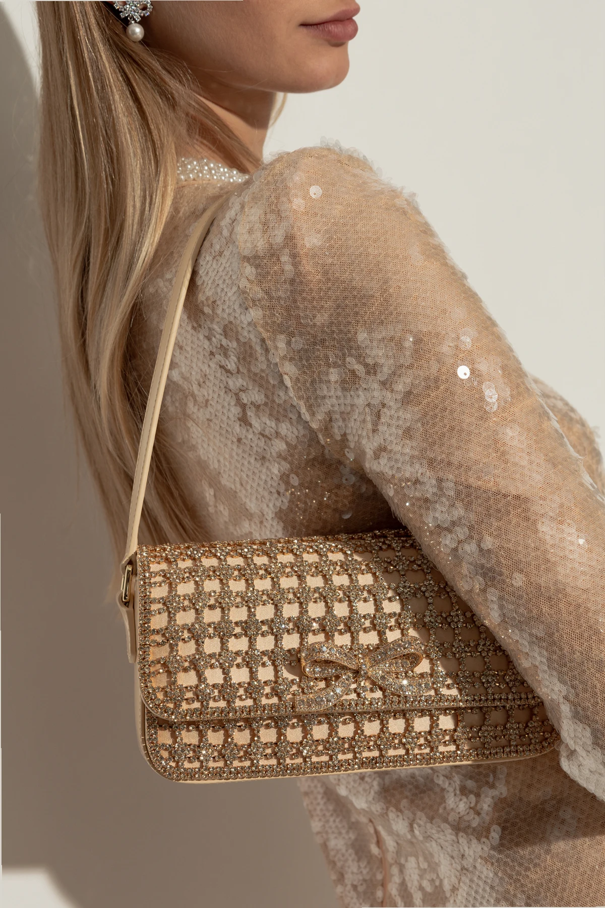 Przedstawiamy torbę do ręki marki Self-Portrait, która stanowi kwintesencję luksusu i wyrafinowanej elegancji. Wykonana z najwyższej jakości skóry, torba zachwyca geometrycznym wzorem złożonym z połyskujących kryształów i koralików, co dodaje jej niepowtarzalnego blasku.