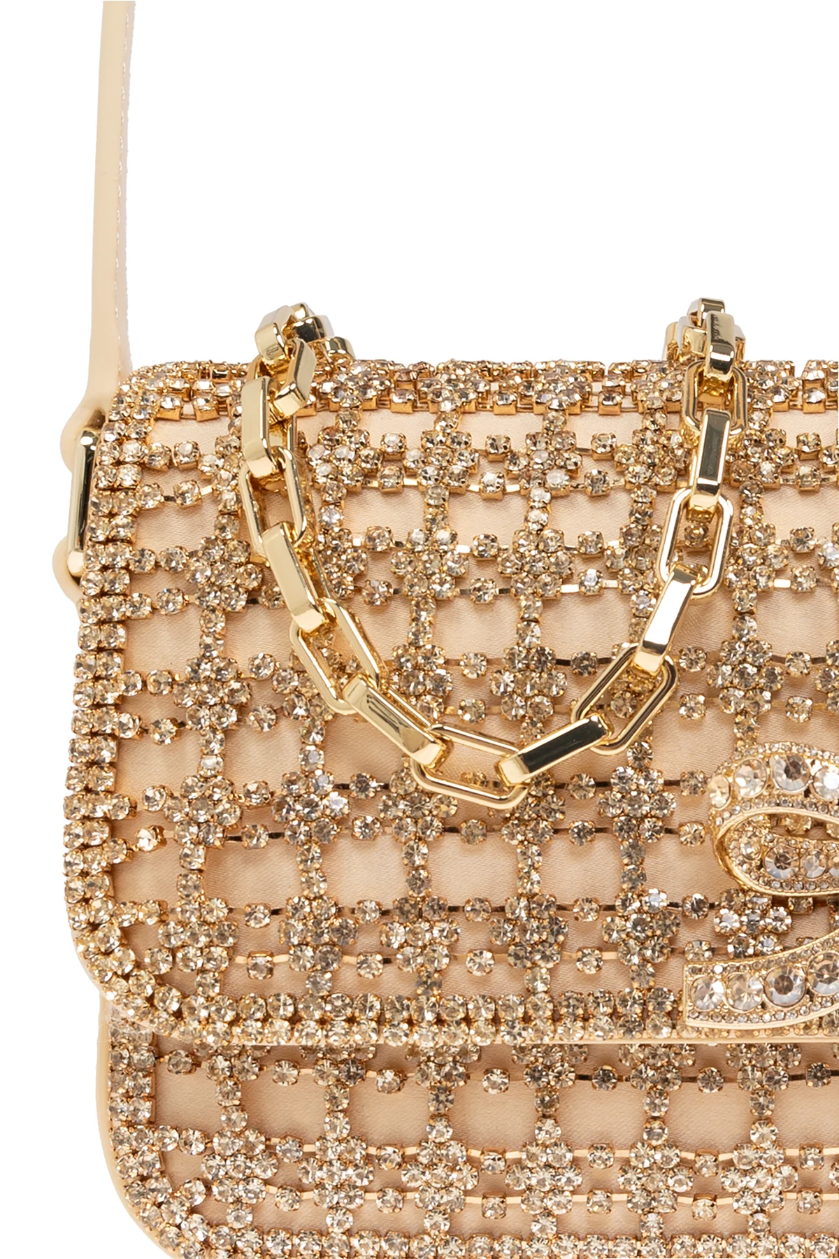Dodatkowy złoty łańcuszek podkreśla ekskluzywny charakter torebki, umożliwiając noszenie jej zarówno w ręce, jak i na ramieniu.