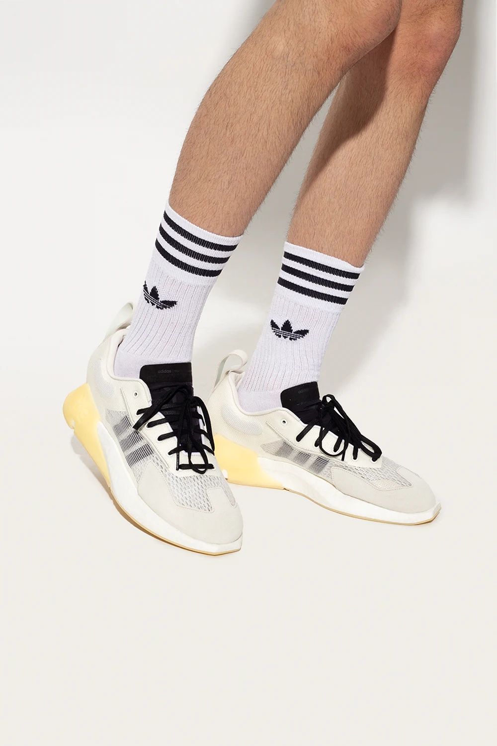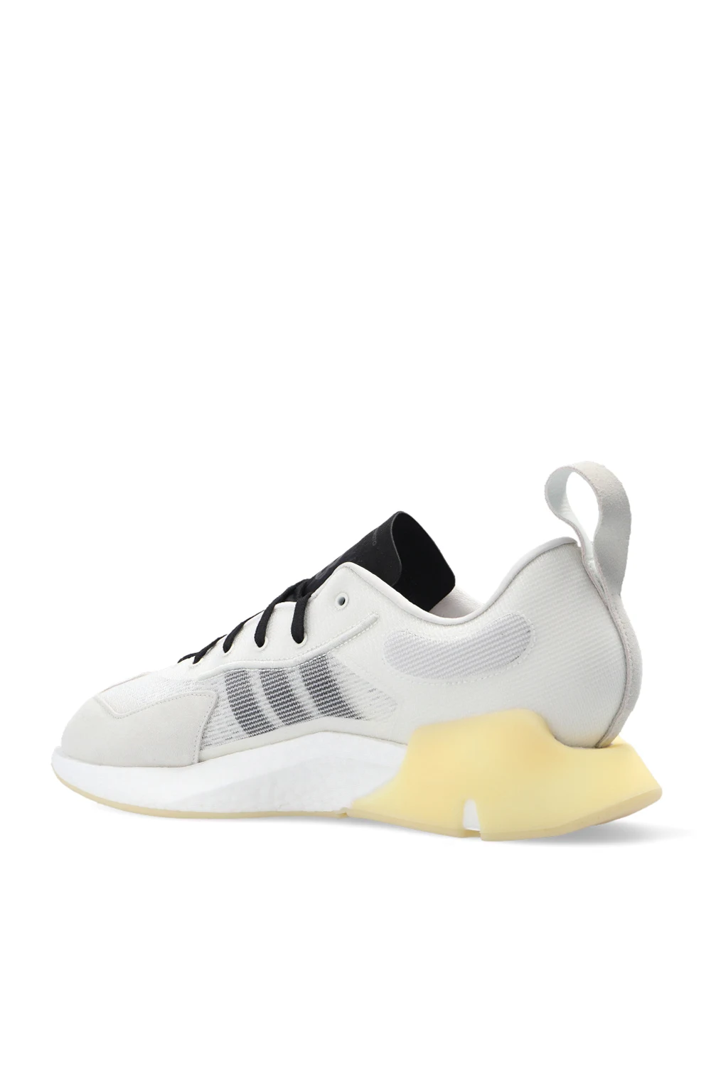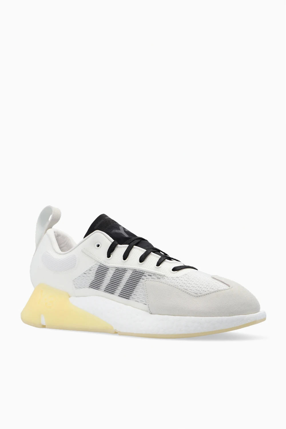 Biało-szaro-czarne buty sportowe, model ‘Orisan’ Y-3 Yohji Yamamoto. Wykonane z transparentnej syntetycznej siatki oraz wykończone zamszowymi i skórzanymi panelami. Na języku logo. Profil ozdobiony charakterystycznymi dla marki trzema paskami. Podeszwa środkowa Boost, gwarantująca wyjątkową amortyzację. Jasnobeżowa, gumowa podeszwa zewnętrzna.