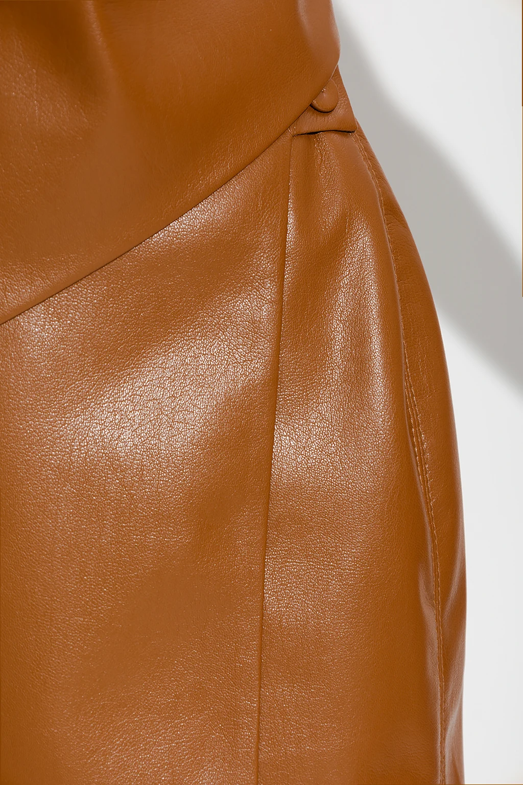 Brązowe szorty z nakładką, model ‘Svana’ Nanushka. Wykonane ze skóry wegańskiej. Zapinane na kryty zamek oraz na guzik. Dwie wsuwane kieszenie.