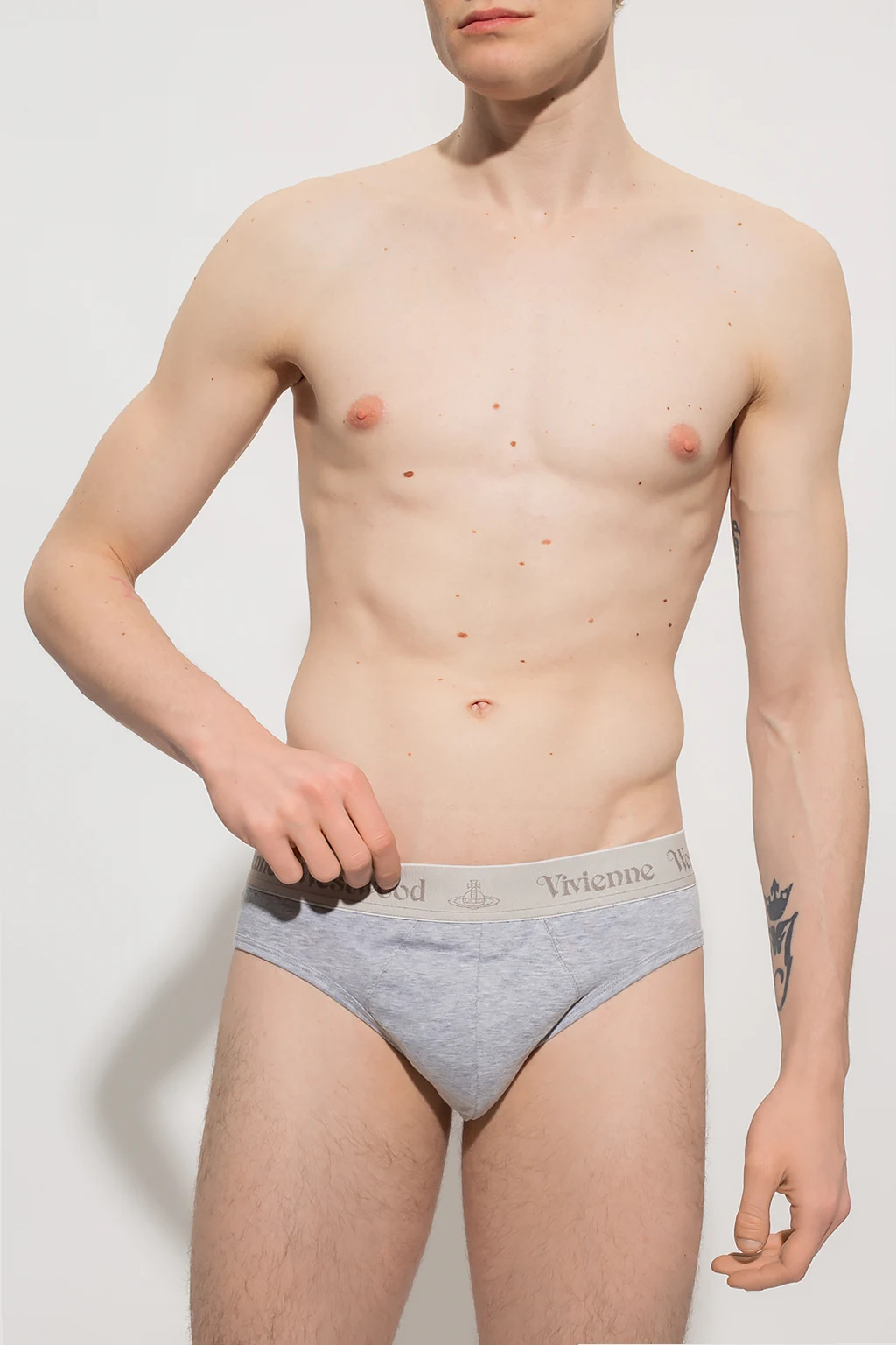 Dwupak szarych slipów Vivienne Westwood, kolekcja ‘Underwear’. Wykonane z bawełny. W pasie wszyta guma z logo.