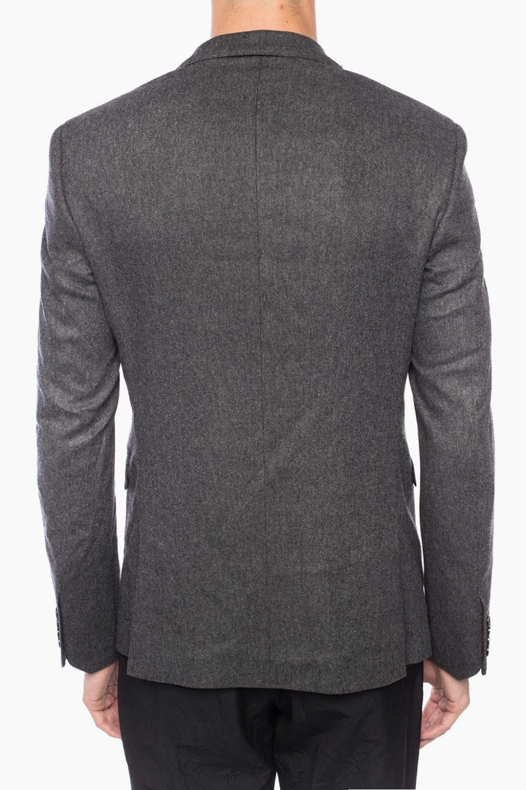 Szara marynarka z otwartymi klapami Zadig & Voltaire. Zapinana na dwa guziki. Z przodu dwie kieszenie z patkami. Z tyłu podwójne rozcięcie.