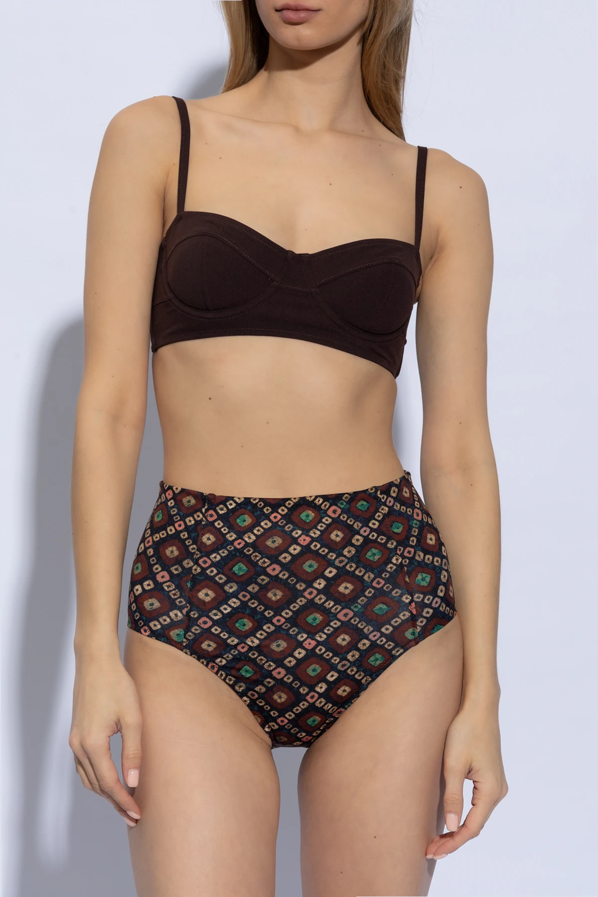 Brązowa góra od kostiumu kąpielowego, model ‘Zahara’ Ulla Johnson. Usztywniana fiszbinami. Regulowane ramiączka.