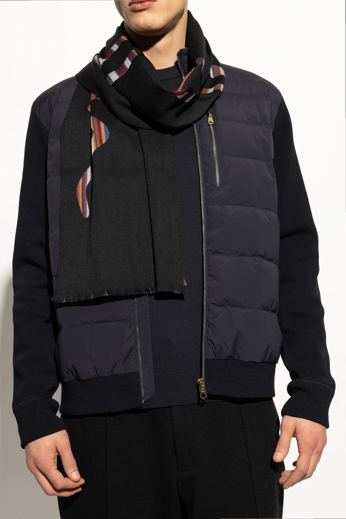 Przedstawiamy Wełniany szal z logo z ekskluzywnej kolekcji Paula Smitha, który idealnie łączy brytyjski ekscentryzm z nowoczesnym designem. Szal, wykonany z najwyższej jakości miękkiej wełny, zachwyca głębokim czarnym kolorem , który stanowi doskonałą bazę dla imponujących, kolorowych wzorów.