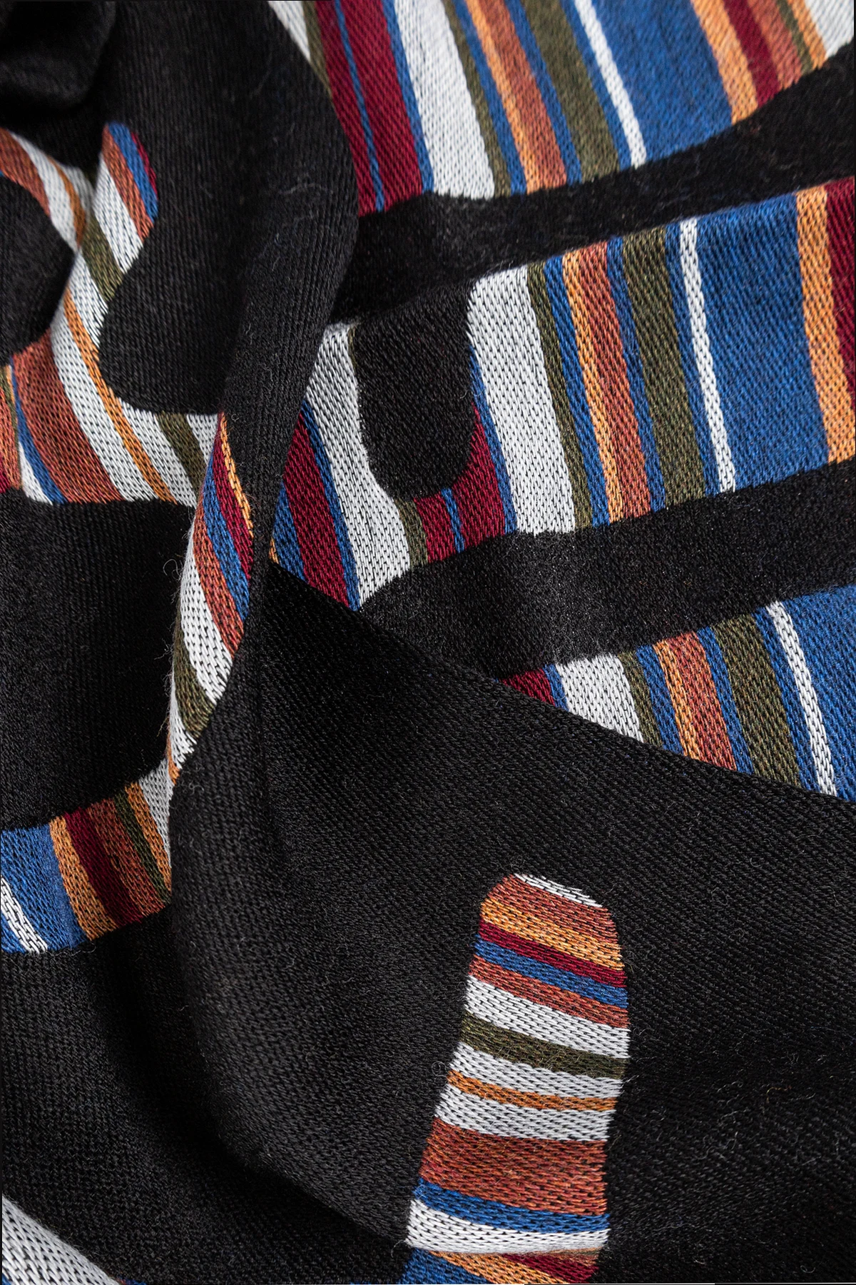 Paul Smith, wizjoner mody, po mistrzowsku łączy klasykę z eklektyzmem, co widać w każdym detalu tego szala. Idealnie komponuje się z ciemnym, klasycznym strojem, dodając każdej stylizacji wyjątkowego blasku.