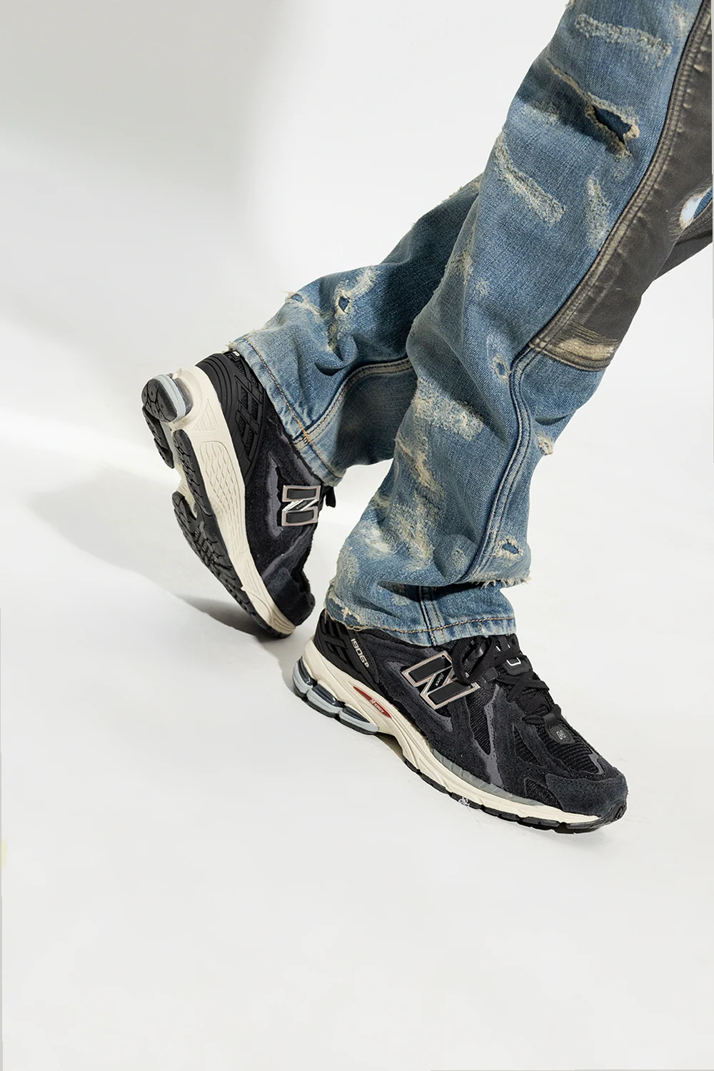 Czarno-szaro-beżowe, sznurowane buty sportowe, model ‘M1906DD’ New Balance. Wykonane ze skóry i materiału. Ozdobione aplikacją z logo oraz usztywniającą klatką na zapiętku. Kremowa, gumowa podeszwa.