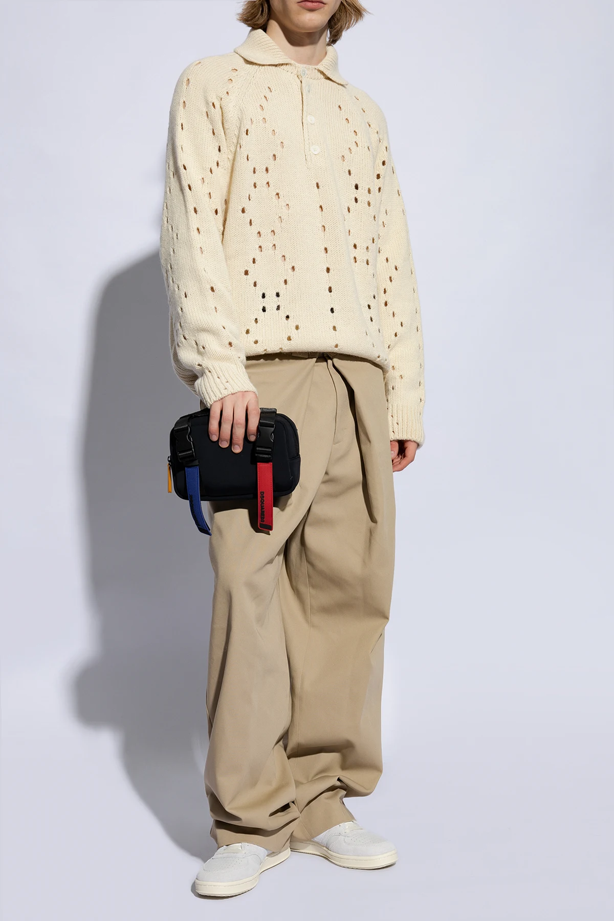 Uzupełnieniem całości jest płaska, gumowa podeszwa w kolorze ecru, która stanowi stylowy kontrast, oraz białe sznurowadła, perfekcyjnie komplementujące ogólną kolorystykę produktu. Wewnętrzna wkładka również posiada branding marki, podkreślając ekskluzywny charakter obuwia.