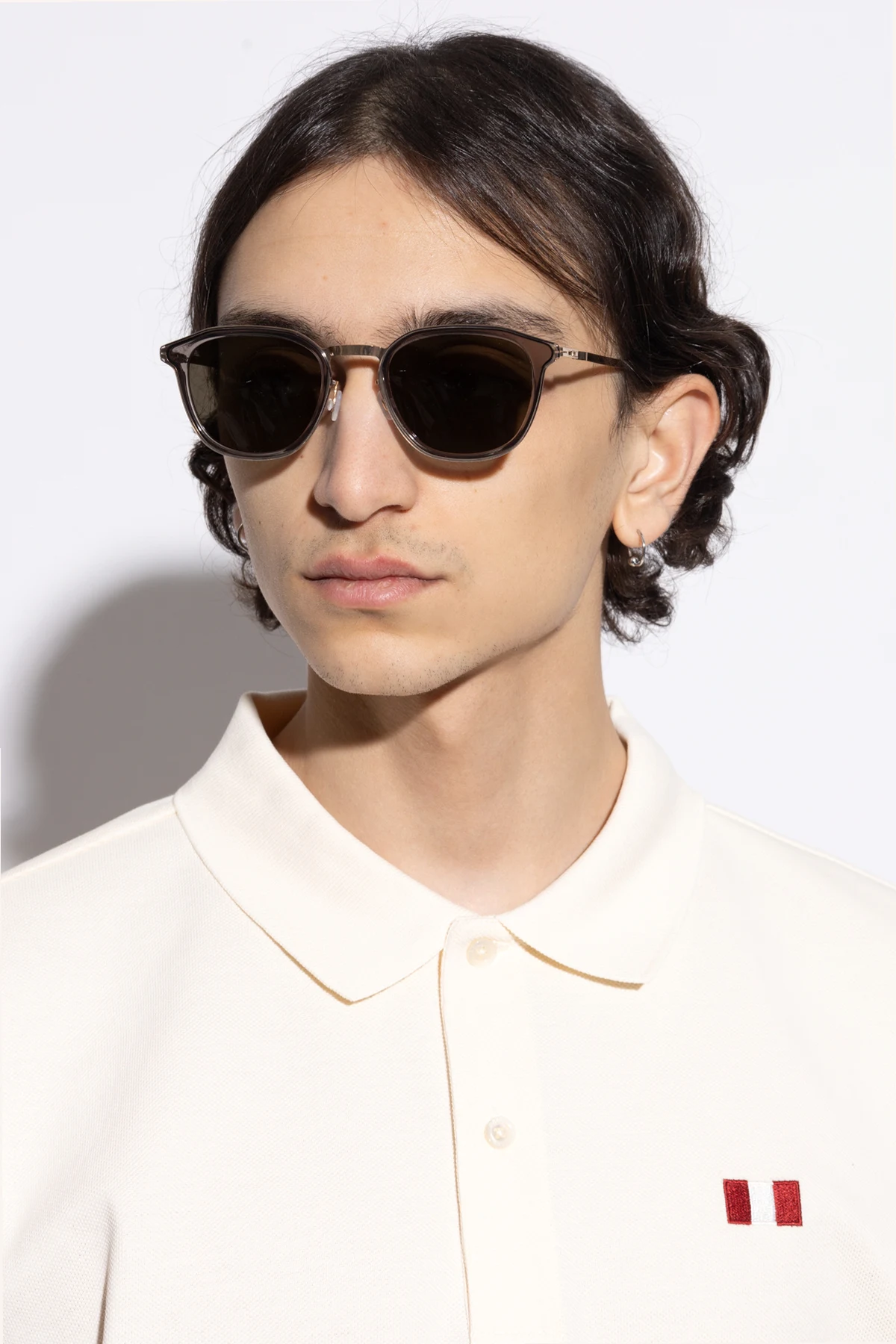 Przedstawiamy Okulary przeciwsłoneczne ‘Dakar’ z prestiżowej kolekcji ‘LITE’ marki Mykita, które łączą w sobie klasyczną elegancję i nowoczesny design. Wykonane z najwyższej jakości acetatu i stali nierdzewnej, te okulary zachwycają swoim zaokrąglonym, kocim kształtem oraz subtelnymi, szarymi oprawkami. Zauszniki w kolorze złotym dodają im luksusowego charakteru, podkreślając ich unikatowy styl.